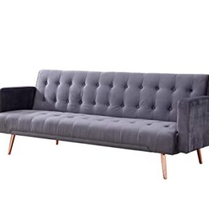 Home Detail Velvet Three Seater Sofa Bed in Grey Pink Blue or Green with Contrast Golden or Rose Gold Finish Legs (Grey with Rose Gold Legs)