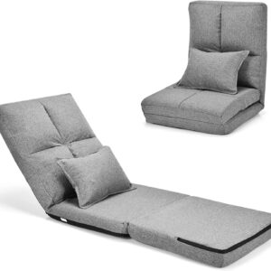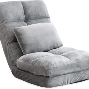 FLOGUOOR Floor Chair, Adjustable 14 Angles Chair Bed with Pillow, Single Sofa Bed Chair, Floor Sofa (Grey) 8823 Rou