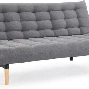 Home Detail 3 Seater Fabric Sofa Bed Dark Grey Pillow Topper Tufted Backrest Wooden Legs