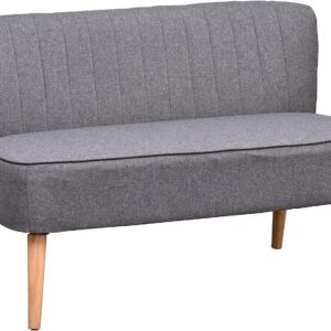 HOMCOM Modern Double Seat Sofa Loveseat Couch 2 Seater Compact Sofa Padded Linen Wood Leg Grey