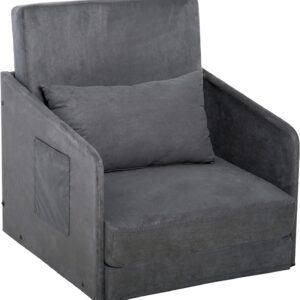 HOMCOM Single Sofa Bed Armchair Soft Floor Sleeper Lounger Futon Couch w/Pillow and Pocket Grey