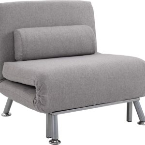 HOMCOM Single Sofa Bed Sleeper Foldable Portable Pillow Lounge Couch Living Room Furniture – Grey
