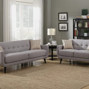 AC Pacific Crystal Collection Upholstered Gray Mid-Century 2-Piece Living Room Set with Tufted Sofa and Loveseat and 4 Accent Pillows, Gray