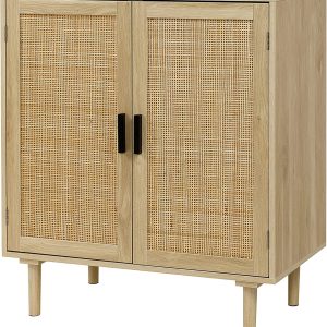 Finnhomy Sideboard Buffet Cabinet, Kitchen Storage Cabinet with Rattan Decorated Doors, Liquor Cabinet, Dining Room, Hallway, Cupboard Console Table, Accent Cabinet, 31.5X 15.8X 34.6 Inches, Natural