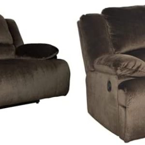 Signature Design by Ashley Clonmel Microfiber Extra Wide Seat Adjustable Power Reclining Sofa, Brown & Clonmel Microfiber Extra Wide Manual Reclining Loveseat, Brown