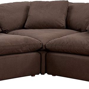 Sunset Trading Contemporary Puff Collection 3PC 88" Slipcovered L-Shape Sectional Sofa | Deep-Seating Down-Filled Modular Corner Couch | Stain-Proof Water-Resistant Washable Performance Fabric| Brown