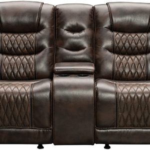 Signature Design by Ashley Game Zone Faux Leather Power Reclining Loveseat with Center Console, Brown
