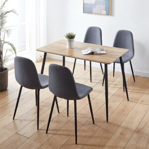 Hallowood Furniture Cullompton Small Dining Table & 4 Fabric Chairs Set with Black Metal Legs – 120 x 70 cm Brown Oak Effect Kitchen Table – Ideal for Home, Restaurants, Pub, Office & Café