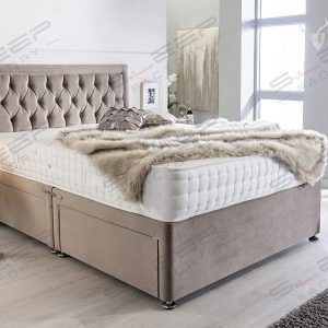 Sleep Factory's Luxury Divan Bed Set in Pebble Plush with Chesterfield Bumper Headboard and Memory Sprung Mattress 4.6FT (Double) 4 Drawers
