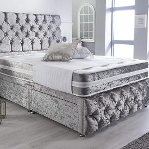 Sleep Factory's Silver Crushed Velvet Chesterfield 2 Drawer Divan Bed Set, Mattress & Headboard 5.0FT (King)