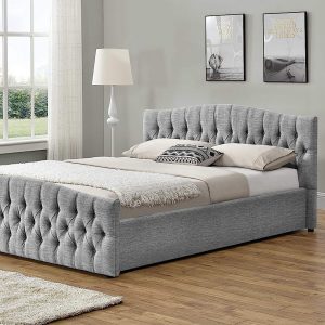 Sleep Trends Chesterfield Fabric Single Double King Ottoman Storage Bed Frame Velvet Chenille Grey Plush (Linen Light Grey, Double (4FT 6IN))