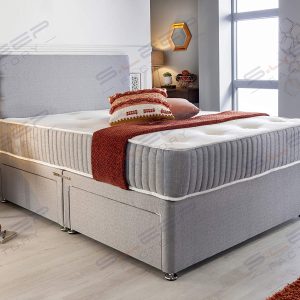 Sleep Factory's Grey Fabric Memory Foam Divan Bed Set With Mattress And Headboard 3ft 4ft 4ft6 5ft 6ft Single Double Small UK King Super King (4.6FT (Double), No Drawers)