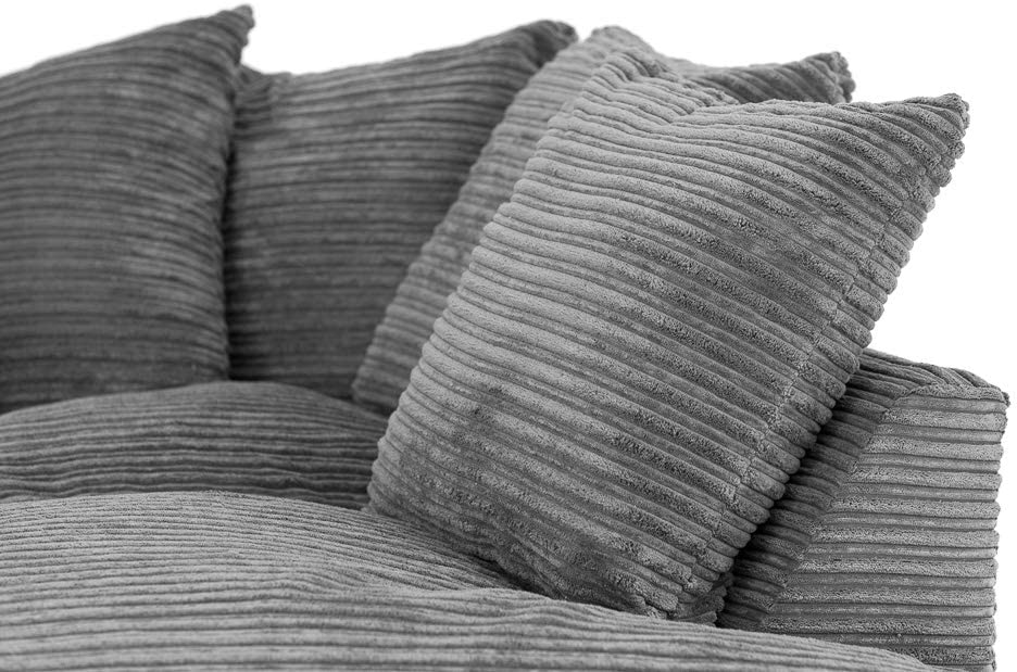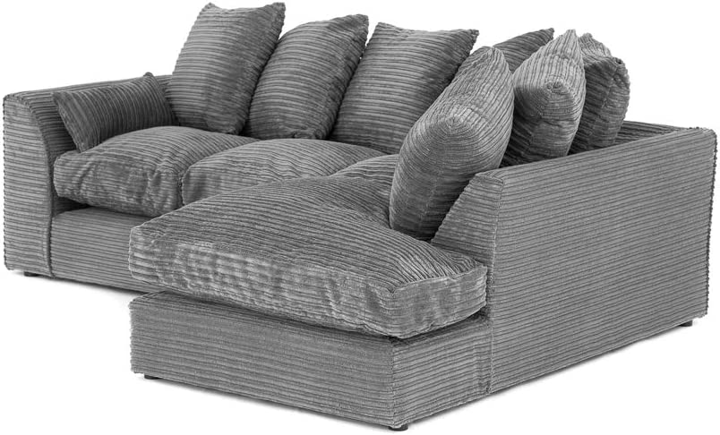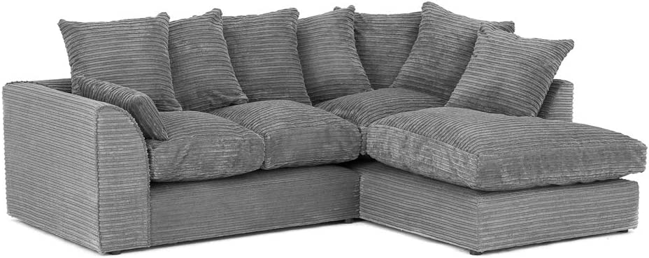 Abakus Direct ® JUMBO DYLAN LH/RH CORNER SEATER SOFA IN GREY CORD CHENILLE FABRIC + FREE FOOTSTOOL | 3-YEAR WARRANTY (RH Corner)