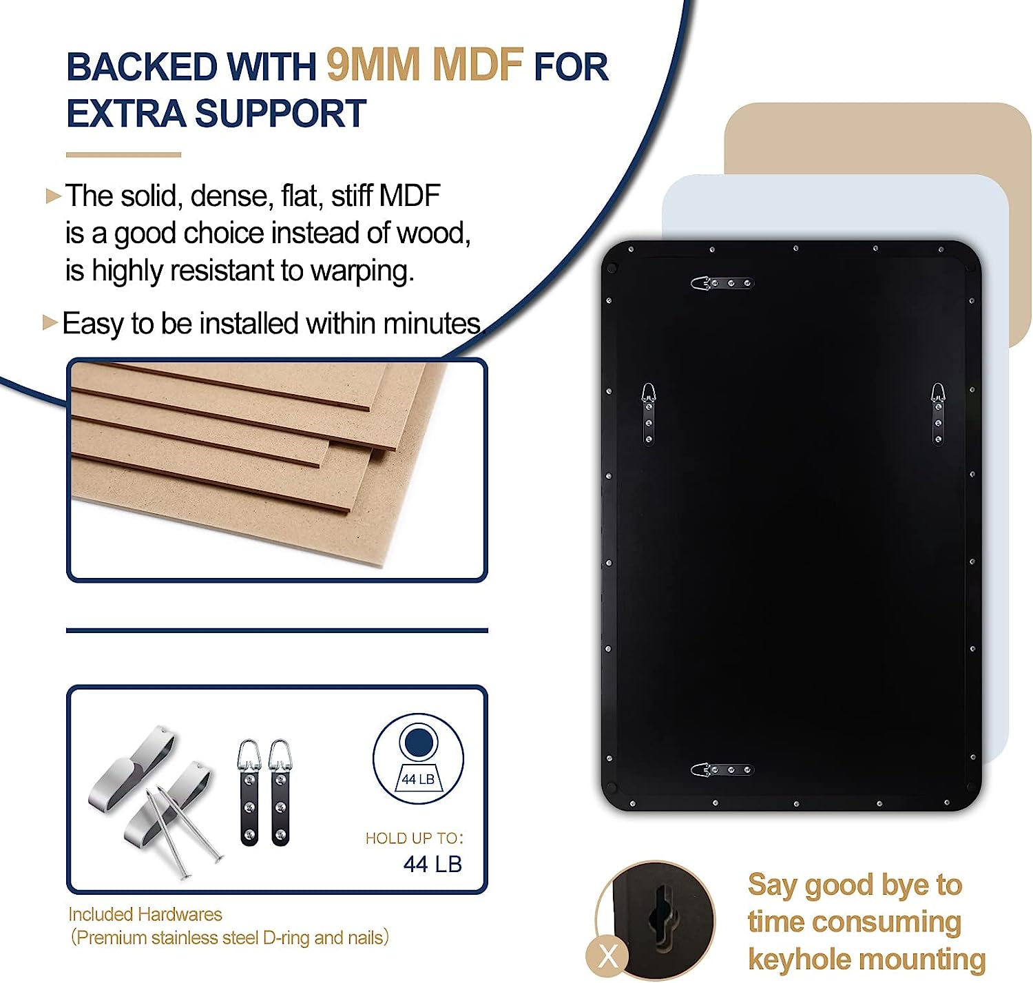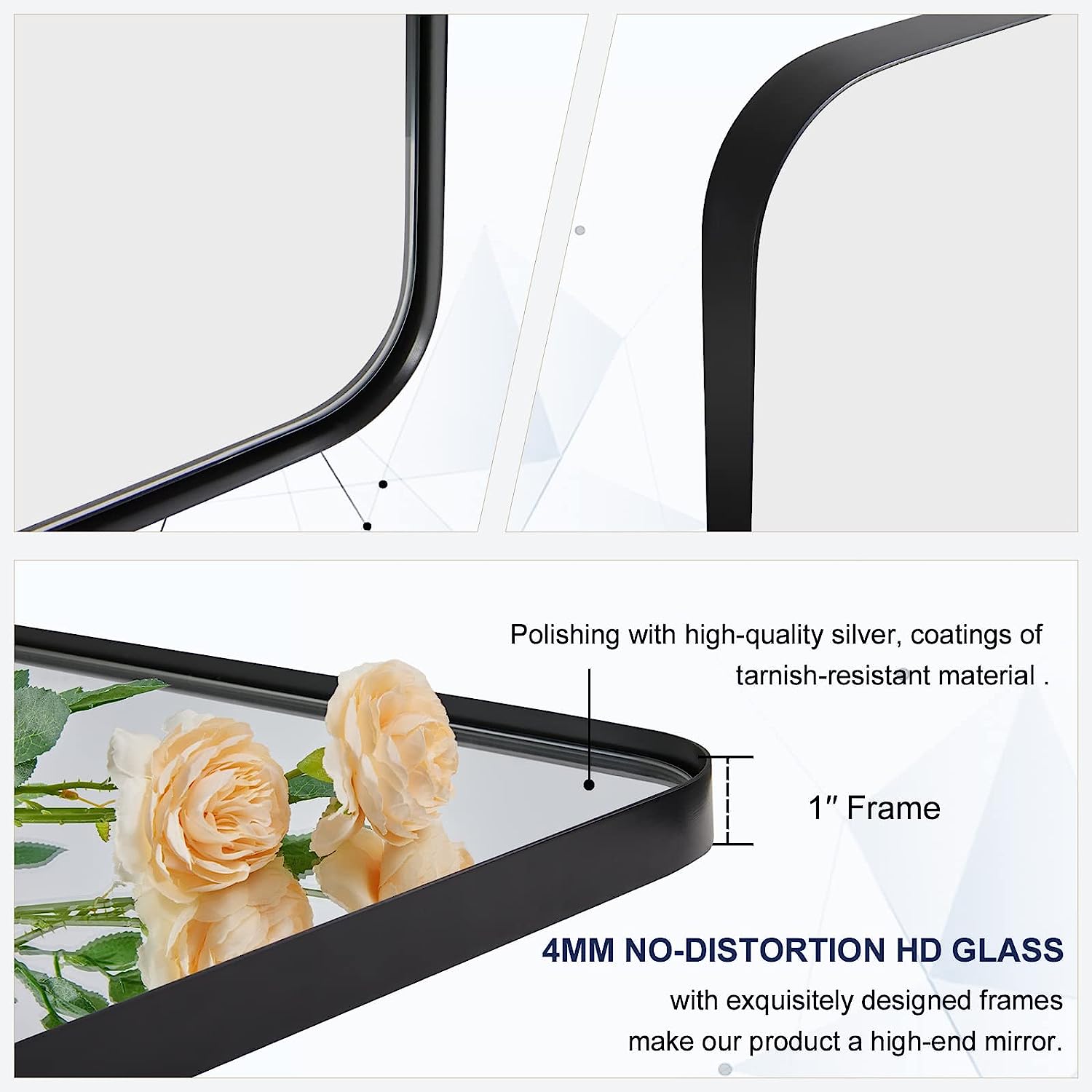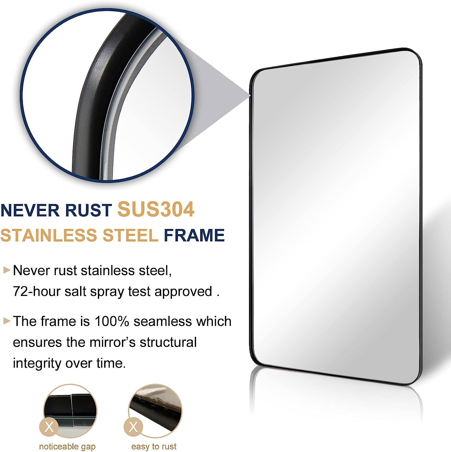 • Premium Wall Mirror for Home 23LBS: This timeless metal rectangle round corner large mirror matches any room and any decor perfectly. Use as a black bathroom mirror, black vanity mirror, or entry mirror. Add light and enhance the beauty of any room in your home instantly!