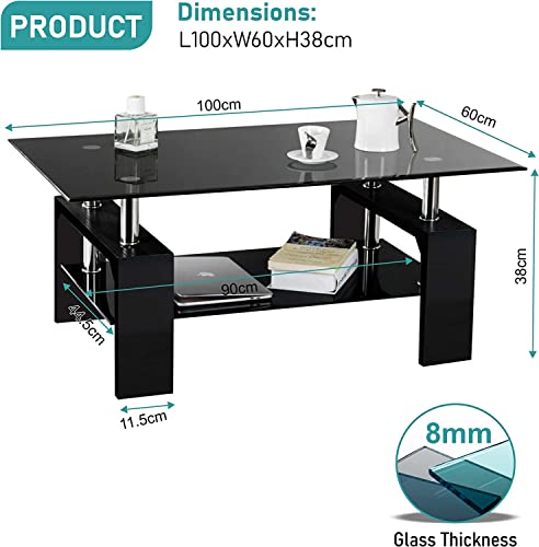 - DIMENSION – 100x60x38cm, 6 Mm Thick Tempered Glass For Bottom Shelf; 8 Mm Thick Tempered Glass For Table Top. [ Assembly required.]