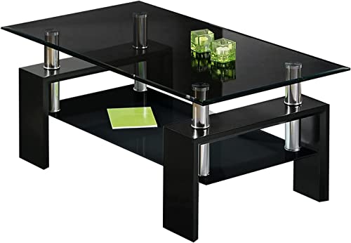 - HIGH HARDNESS TEMPERED GLASS – Our coffee table Glass is 8mm Tempered glass ,A Clear Tempered Glass Top Surface, Frosted Glass Lower Shelf And Stainless Steel Support Combine With Mdf Legs.This Rectangle Coffee Table Is Widely Applied In Home