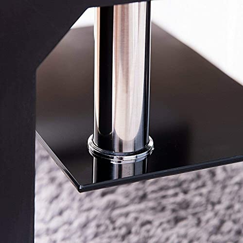 Material : Glass & Stainless Steel And MDF Wood Shape : Rectangle Features : With Shelves, With Storage Room : Living Room, Guest Room COLOUR : Black With Black Tempered Glass.PRODUCT MEASUREMENTS White: H 38 X W 60 X L 100 Cm FEATURES