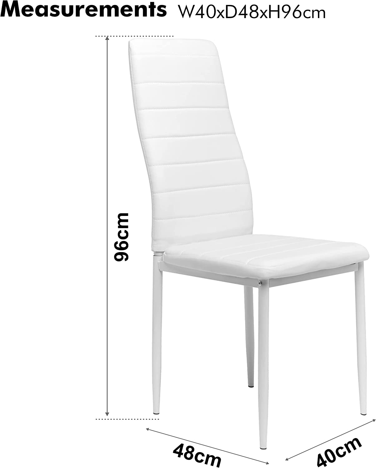 FEATURES Pu Leather Dining Chairs Upholstered PU Leather Dining Chairs Seat With The Solid Metal Chair Leg Offers Durability.Suitable For Kitchen, Dining Room, Office, Restaurant, Coffee Shop, And Domestic Use Space Saving Table and Chairs. The Table Has a Stunning Marble Top Finish Make Good Addition To Your Dining Room. That You Can Enjoy For Many Years The Chairs Back Rest Are Extra Padded Cushioned For Extra Comfort Dining Table and Chairs. Table Size: 120cm (Length) X 80cm(Width) X 75cm(Height): Chair Size: 96cm (Height) X 48cm(Depth) X 40cm(Width). Easy To Put Together, All Fixing Are Included, This Set Comes Flat Packed And Requires Self-assembly. SPECIFICATION CHAIR Material: PU Leather Chair Height 96cm Chair Width: 48cmChair Depth: 40cm Colour: White , BlackChair Set: 4 TABLE Material: 17mm Engineered WoodColour: White MarbleShape: RectangularTop Thickness:17 mmTable Size : L120cm x W80cm x H 75cmFeatures: Flat Pack, Space SavingRoom: Dining Room, Kitchen, Living RoomSet Includes: ChairPACKAGE INCLUDED 1 Dining Table and 4 Chair Installation Instruction