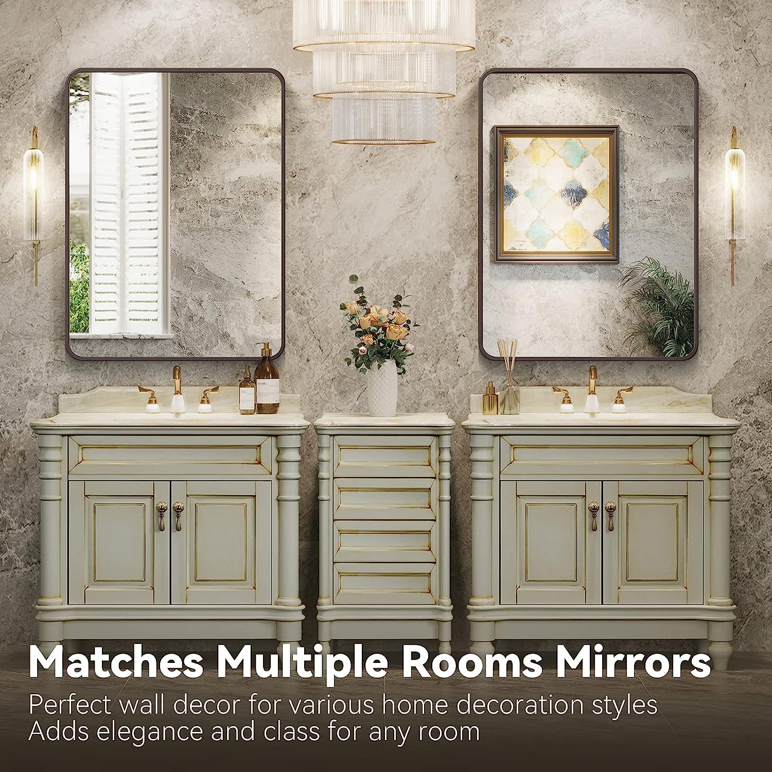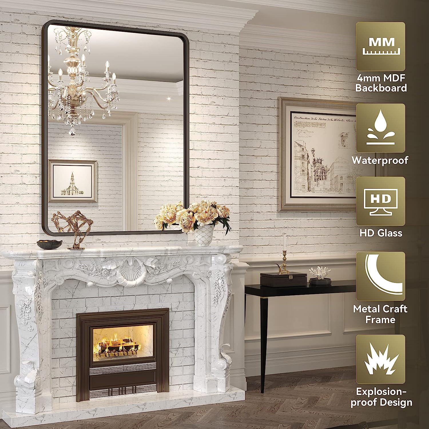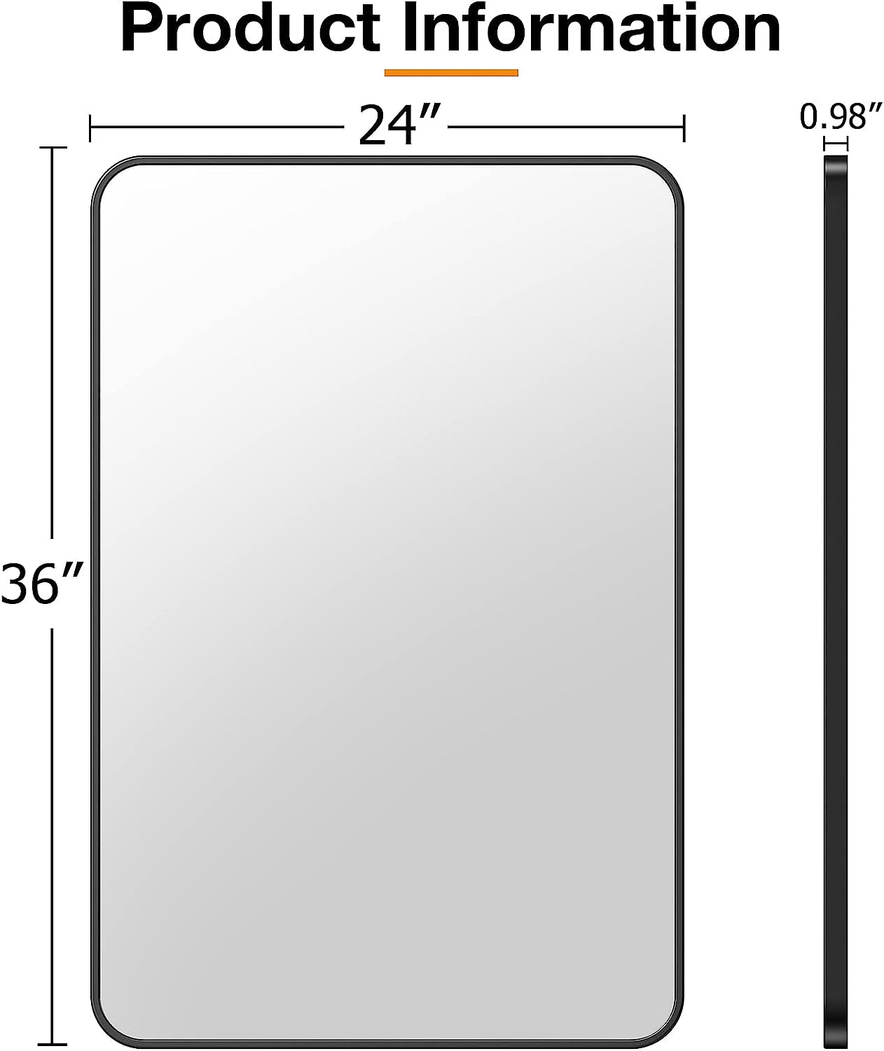 - SIZE OF BATHROOM WALL MIRRORS: The large standard bathroom mirror for wall, 24×36 black mirror for you to choose. We always believe that beautiful and unique style life can inspire your confidence,then start with a perfect bathroom mirror.