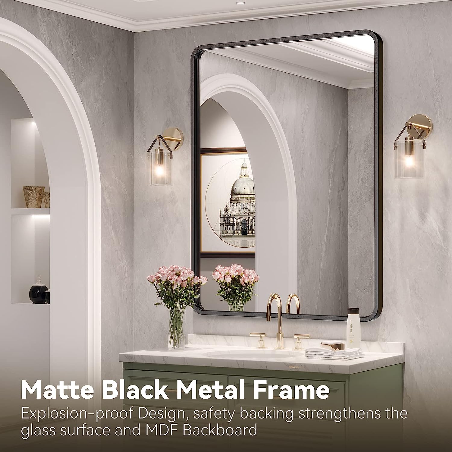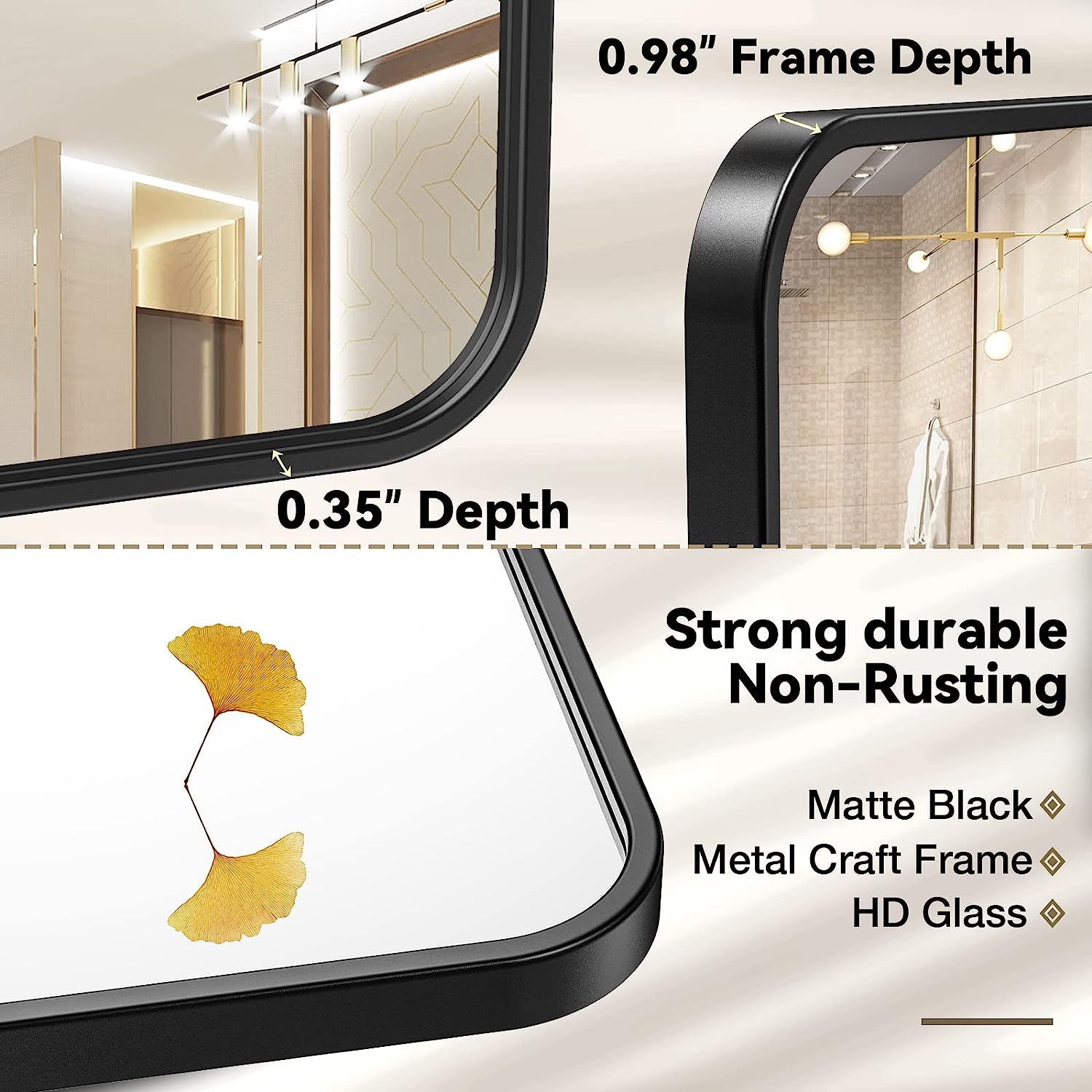 - EASY MOUNTING BATHROOM MIRRORS FOR WALL: Our Matte Black Vanity Mirror including 4 Metal Hooks for you to change the Horizontal and Vertical Installation. Equipped with hanging hardware on the back, increases you wall mirror stability and safety.