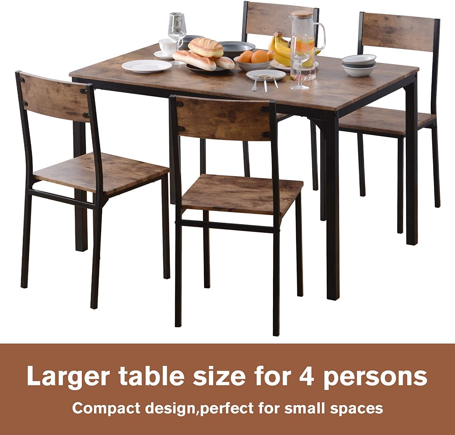 Dining Table and Chairs Set Kitchen Table Furniture Dining Set Solid Table & Metal Legs (Rustic Brown Table and 4*Rustic Brown Chairs)