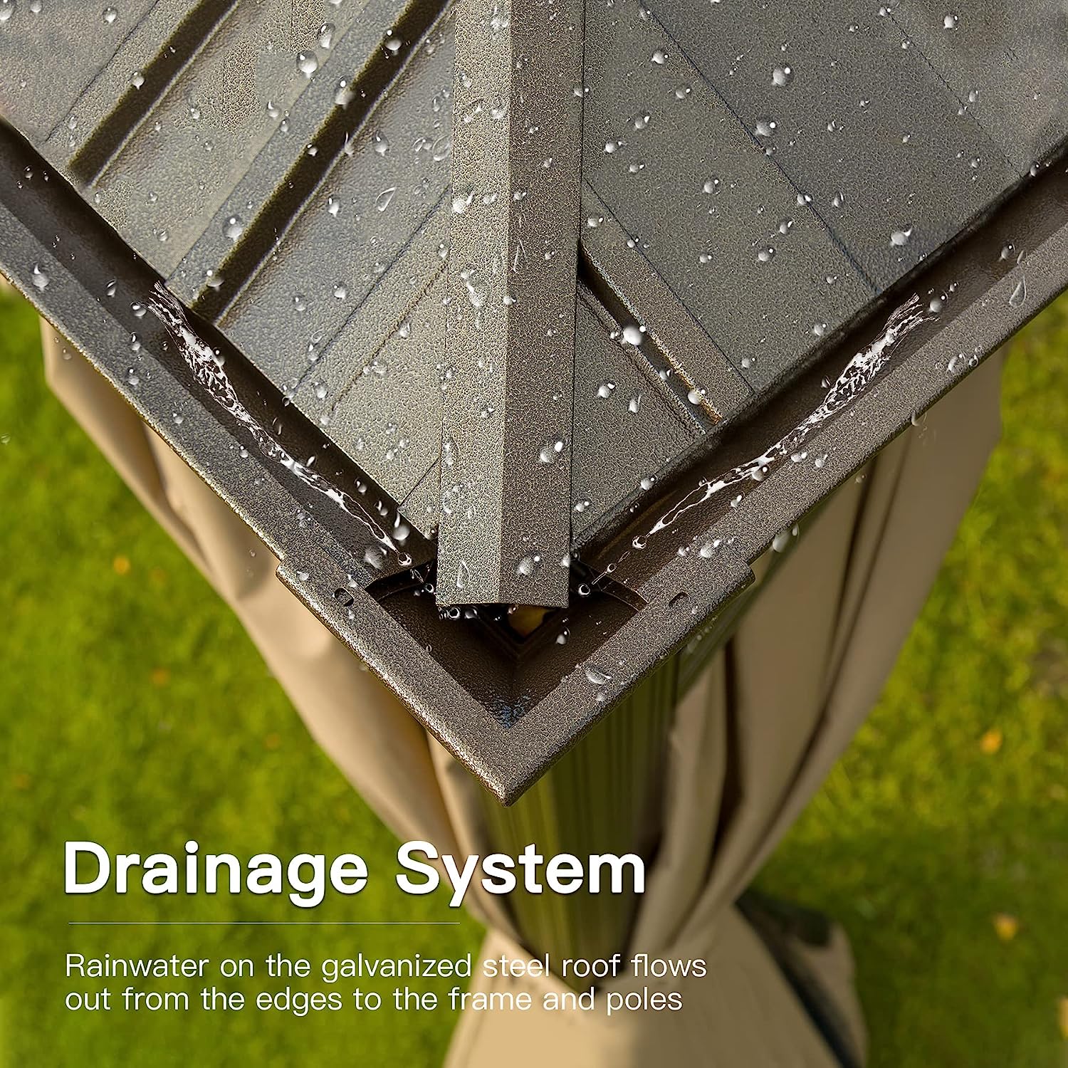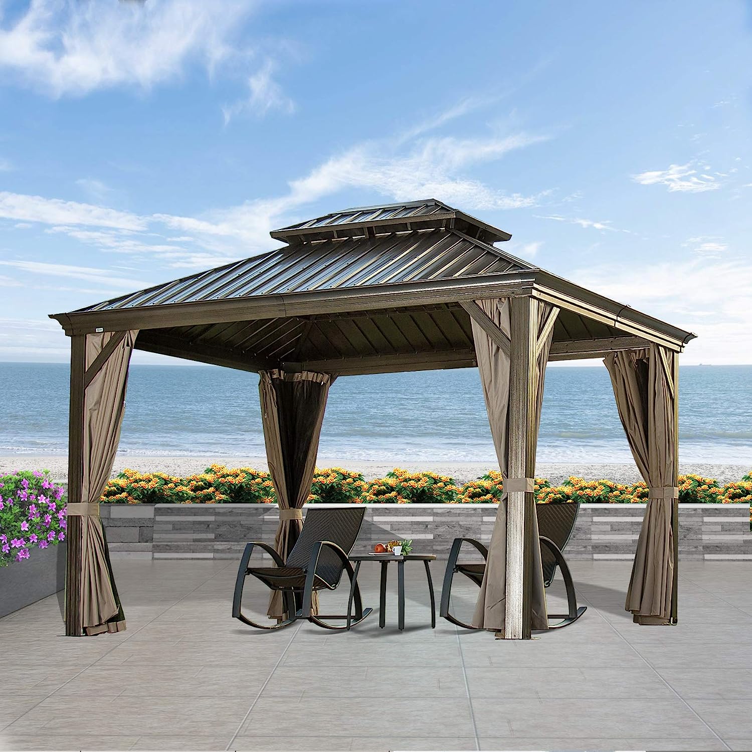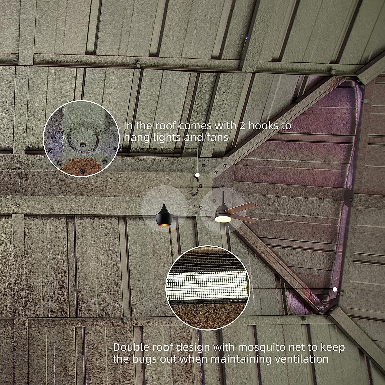 • 🌞【VENTILATED DOUBLE TOP DESIGN】This outdoor patio gazebo designed with a ventilated double-layer galvanized steel roof to provide a healthy and airy space.Features a galvanized steel sheet top that prevents fading and prolongs service life.