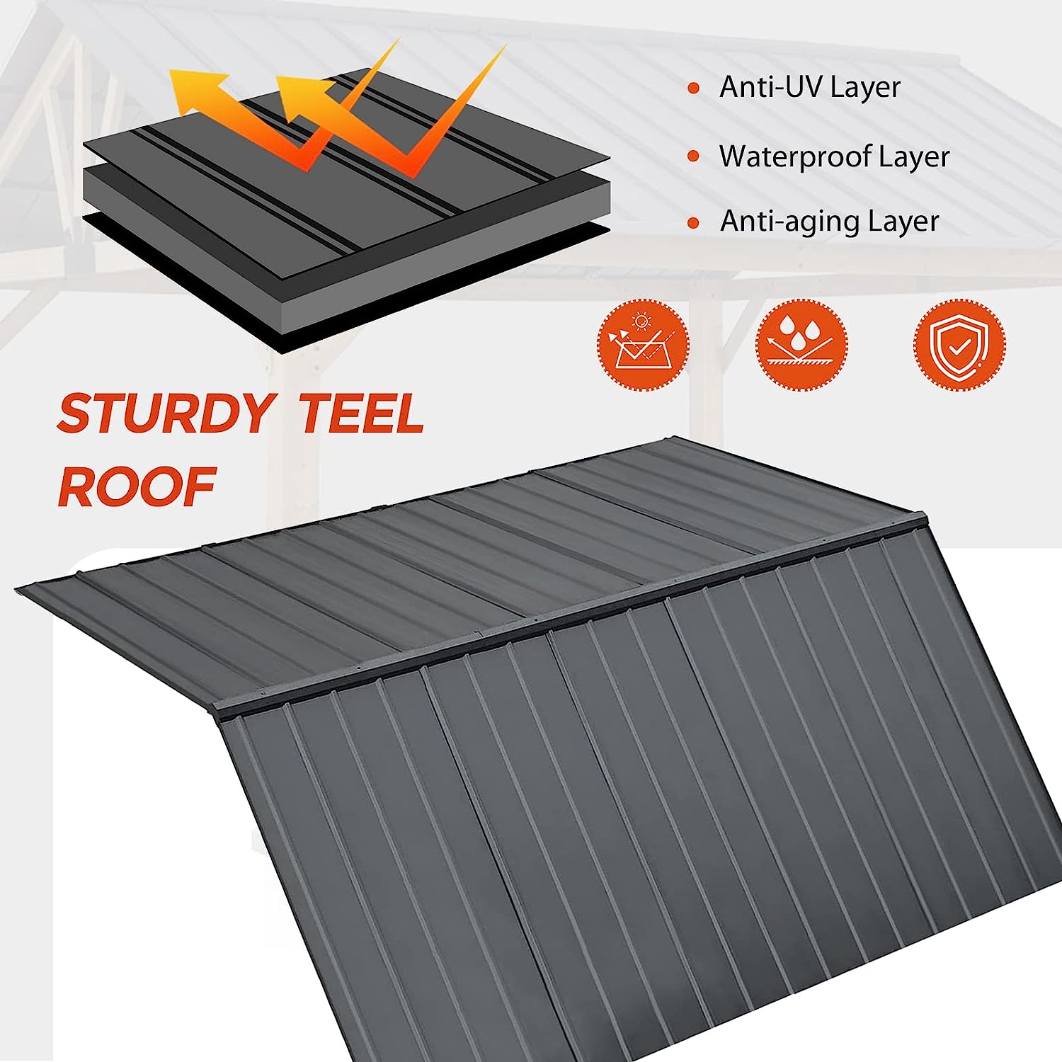 - PREMIUM DESIGN: Eagle Peak wood gazebo steel brackets reinforce your shade structure adding even more stability and reducing movement while providing premium accents to your backyard focal point. The reasonable roof slope design allows water to flow out fast to prevent rainwater from massing. Ceiling hook provided for suspending lighting.
