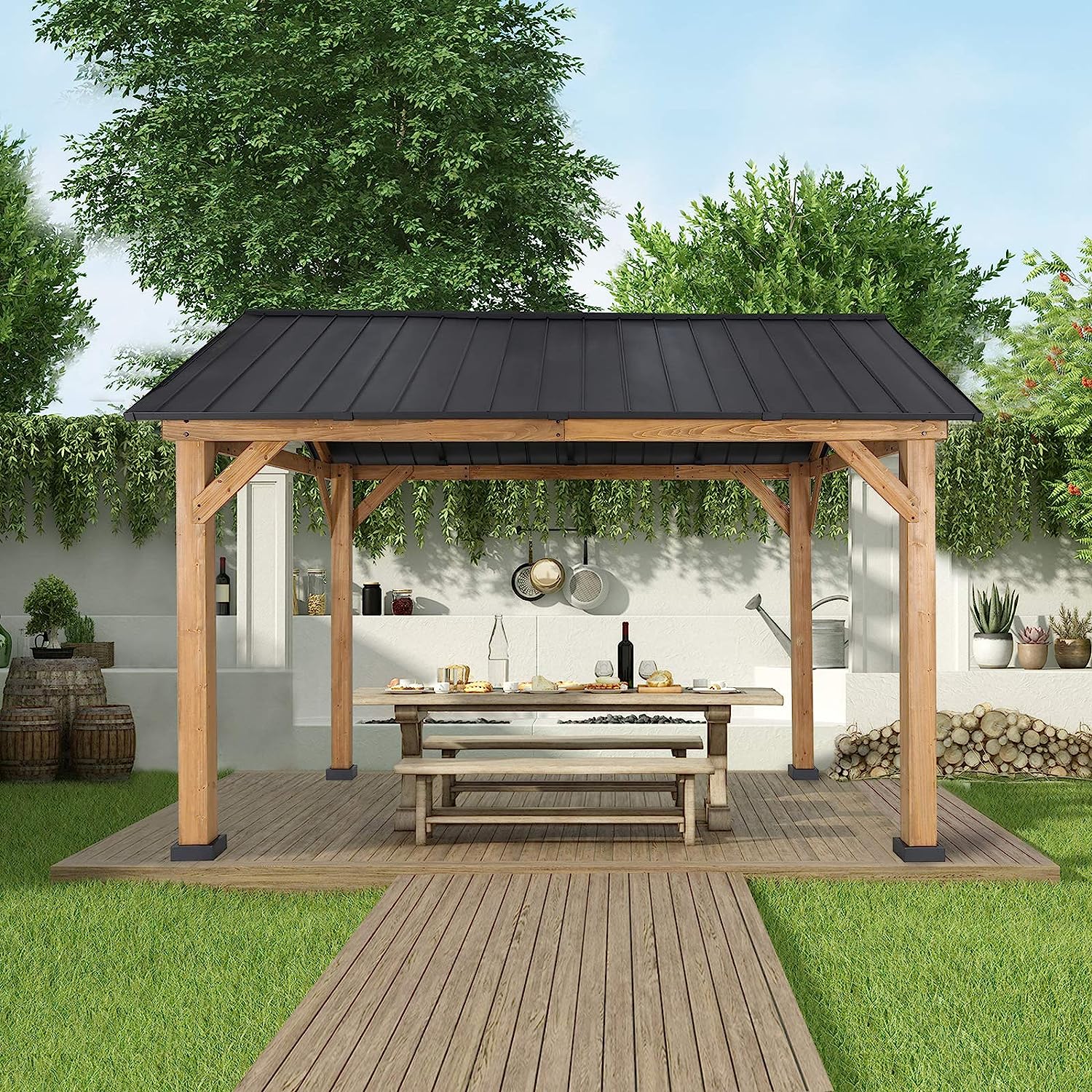 EAGLE PEAK 13×11 Solid Wood Patio Gazebo, Cedar Framed Outdoor Pavilion Cabana with Black Steel Gable Hardtop Roof, 12×10 Frame, Black
