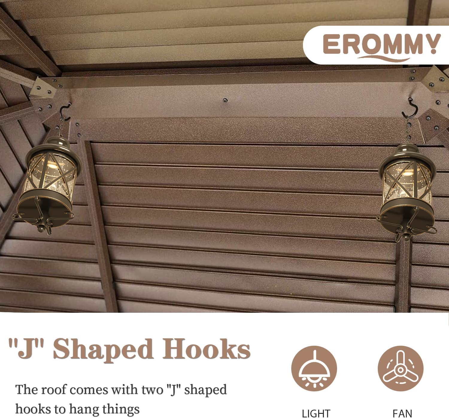 • 【EASY TO ASSEMBLE】EROMMY Gazebo 10 x 13 comes in a total of 2 boxes, so please collect them all before installing them. We recommend that 2-4 people work together and it will take approximately 3-5 hours according to the instructions. We offer excellent after-sales service. If you have any questions, please feel free to contact us.