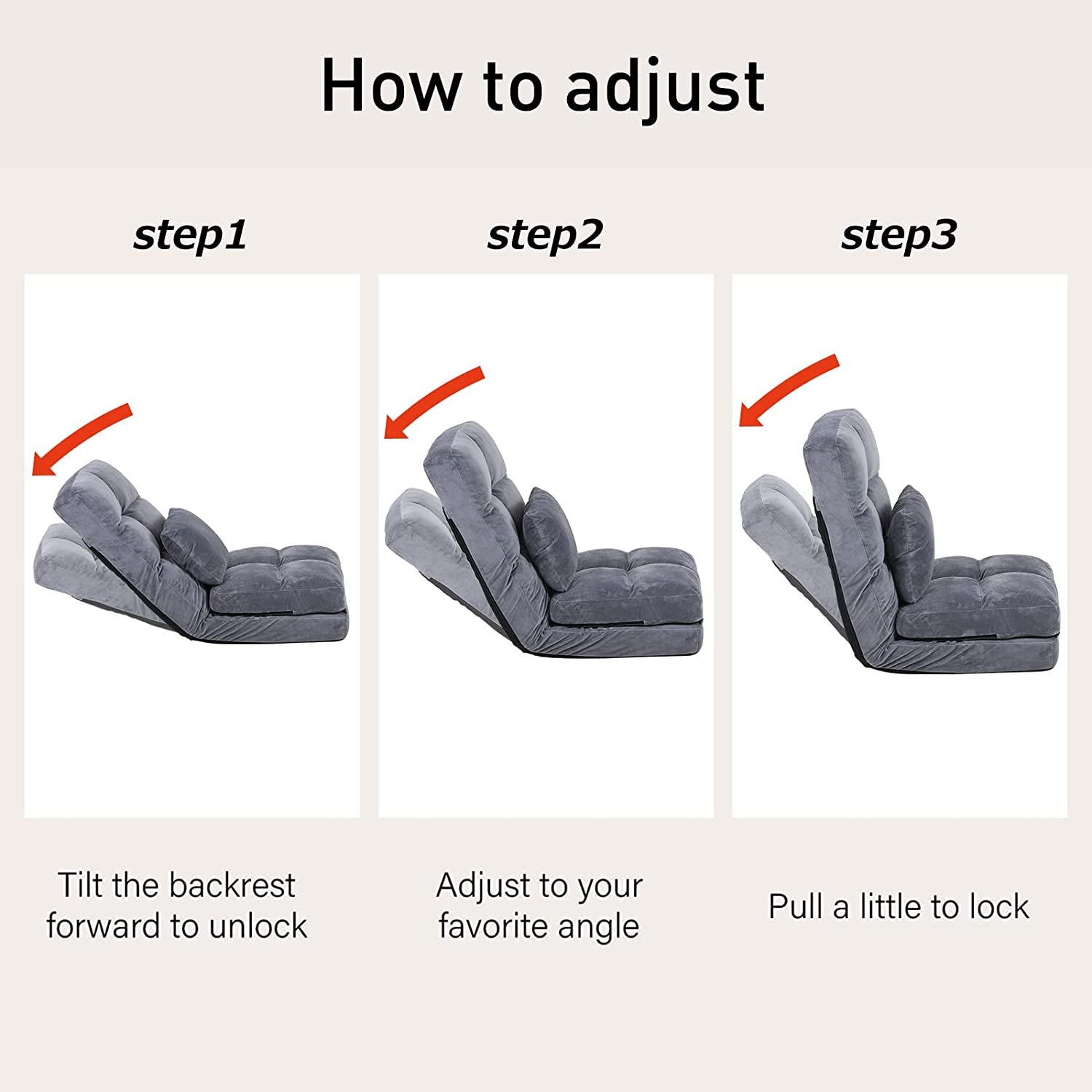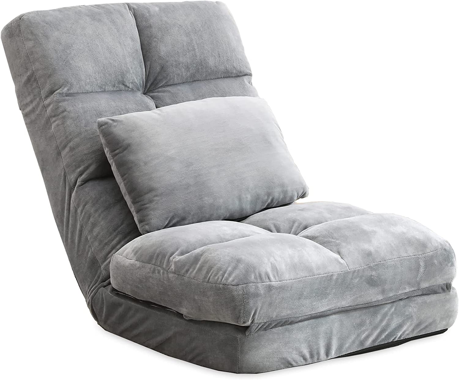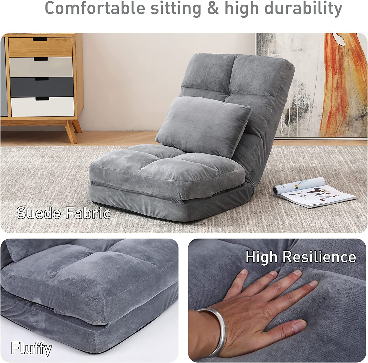 FLOGUOOR Floor Chair, Adjustable 14 Angles Chair Bed with Pillow, Single Sofa Bed Chair, Floor Sofa (Grey) 8823 Rou