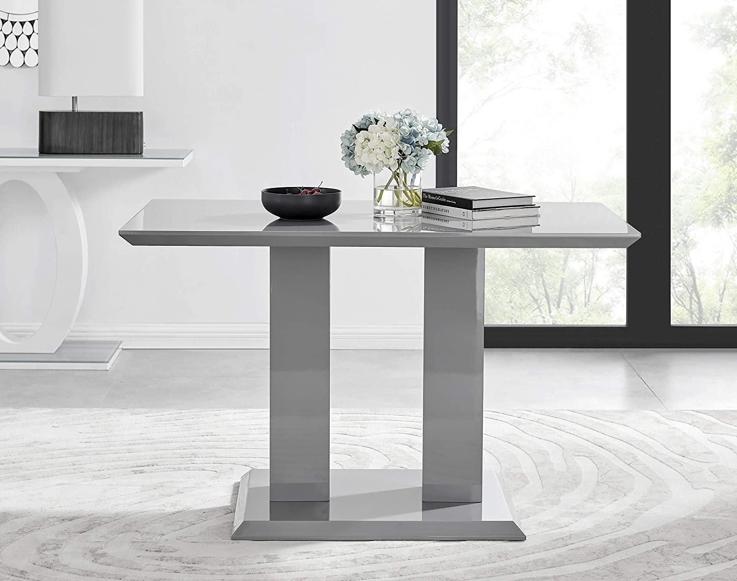 Furniturebox UK Imperia 4 Modern Grey High Gloss Dining Table And 4 Stylish Contemporary Lorenzo Dining Chairs Set (Dining Table Only)