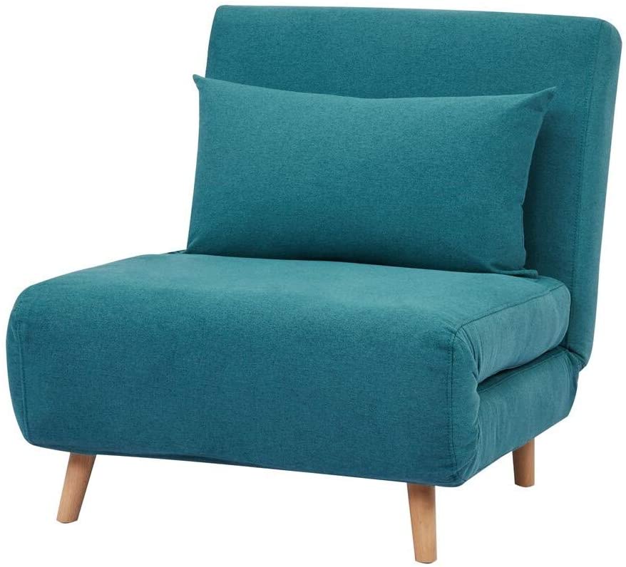 GIA Tri-Fold Convertible Polyester Sofa Bed Chair with Removable Pillow and Legs, Peacock Blue 1 pack