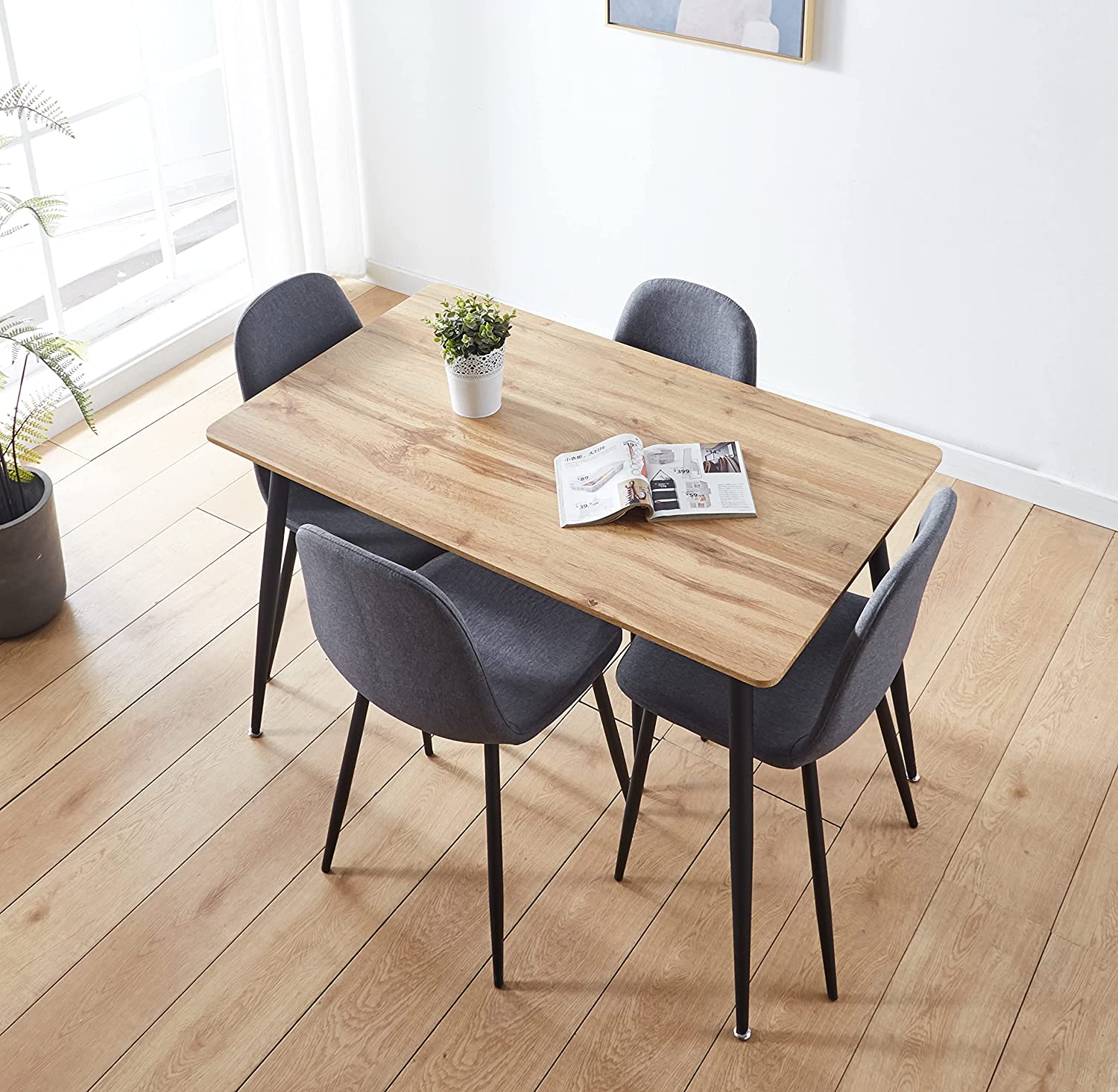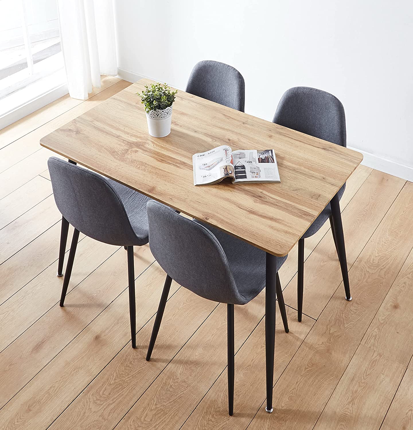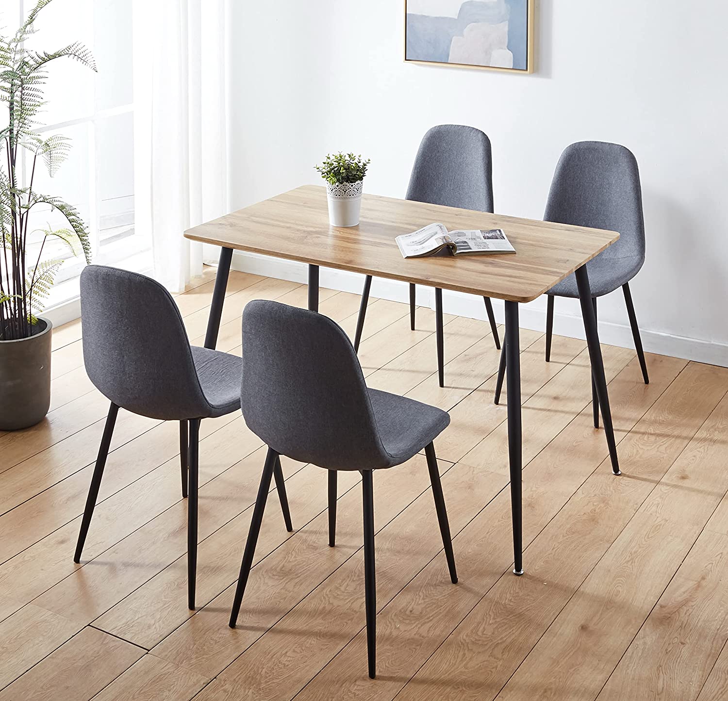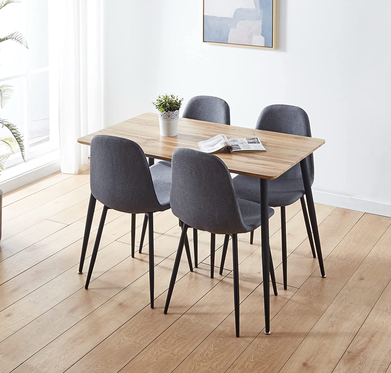 This impressive table draws attention right away. The top of the oak effect table is simply beautiful and is the perfectly perfect for solid feet in black powder. The table is important without being dominant in any space. It maintains a relatively thin profile and can be comfortably lodged in houses of all sizes. With its distinctive design of marble effect, this table can be used for various ends in the house. One thing you can be in it is that it will look good in any context. The table is the idiotic partner who shares the same black powder feet as the table. Robust, durability and style all come in the same measure with this superb pôce. This trendy fabric chair with black feet is the embodiment of contemporary style. The chair has a thin profile with a discreet but exquisite curved design. Idé as a dining room chair, office chair or delicate chair; It will bring a touch of class where you place it in the house. The chair comes in an ultra-modern shade. It is a tone of color which is a popular choice in the contemporary interior design. However, he will get married with any choice of deception in the house. Versatility and style are provided in the same measure with this superb pôce. Solid and robust feet perfectly complete the gray fabric of the seat and backrest. Although this table is designed for 4 adults to use, it is acceptable for six people to share when adults are gone with young children. If so, please buy two other chairs.