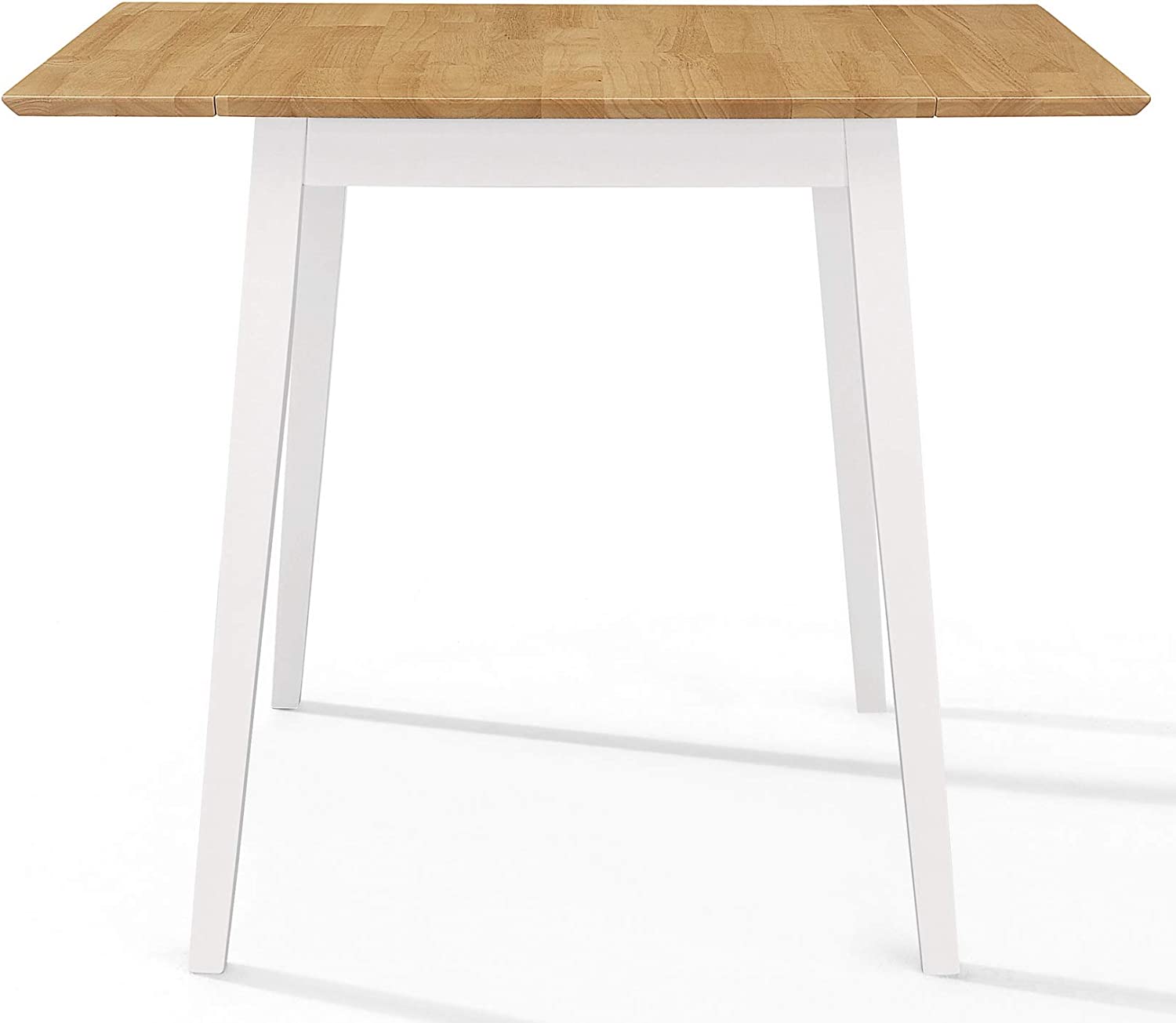 Product Description This table set with 4 chairs is ideal for smaller spaces or homes which benefit from space-saving furniture. The table has extendable leaves and can make a great sideboard or extra surface against a wall when folded down. For a crafting or hobby room, this table is ideal, as it can be stored neatly away when not in use, and extended to full size to create a generous space on which to spread out your materials and get creative. The lacquered finish offers protection and a surface which is easy to clean after a messy day. The table set is made of 100% rubber wood and in white painted finish and will fit perfectly into any room with a light, pastel or neutral colour scheme. Safety Warning Domestic Furniture. Keep away from naked flame or direct heat sources