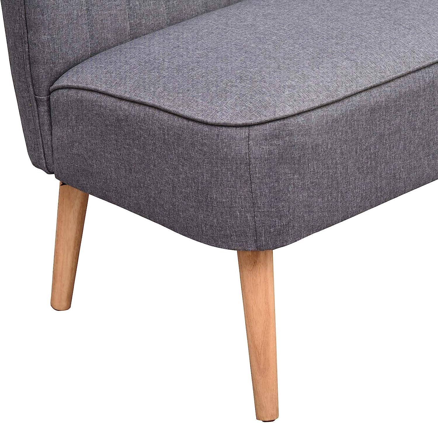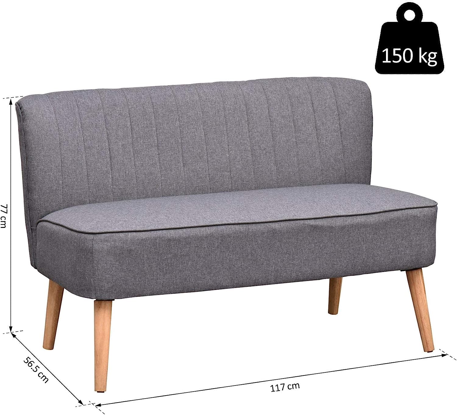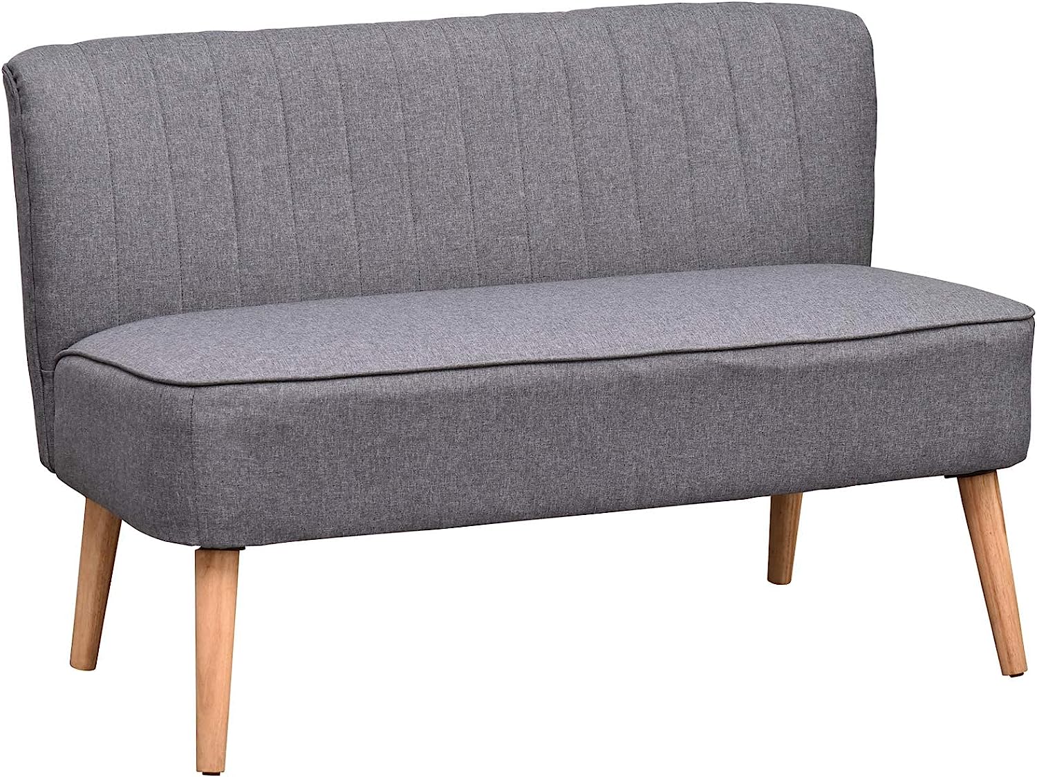 HOMCOM Modern Double Seat Sofa Loveseat Couch 2 Seater Compact Sofa Padded Linen Wood Leg Grey