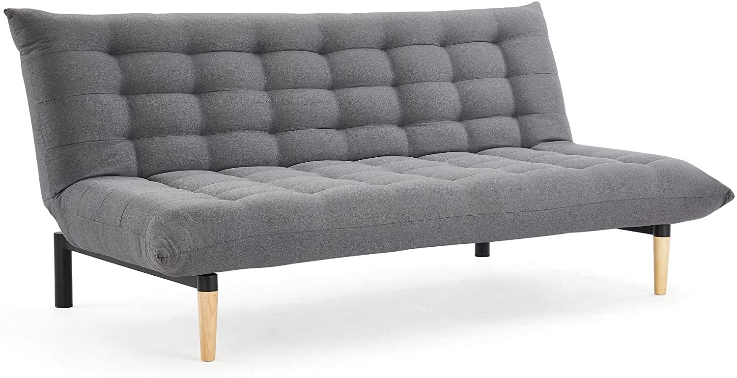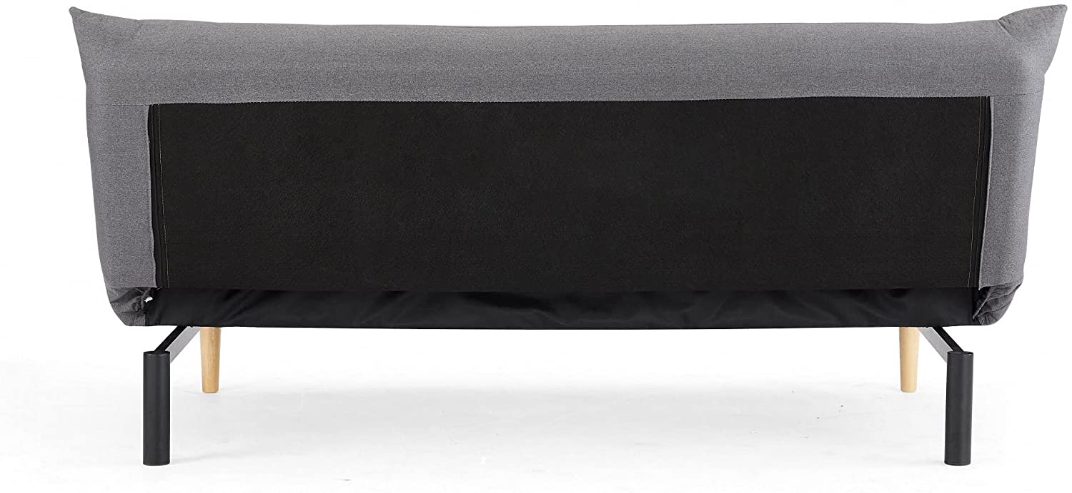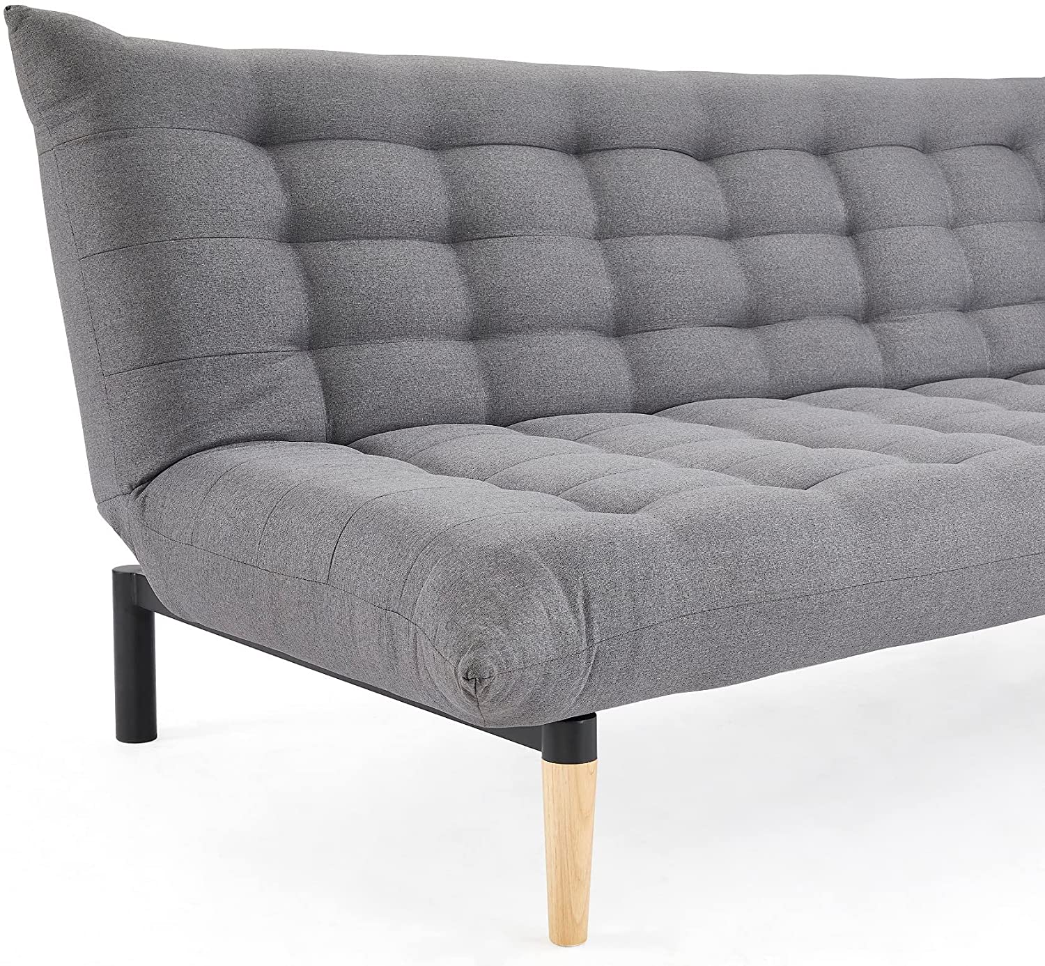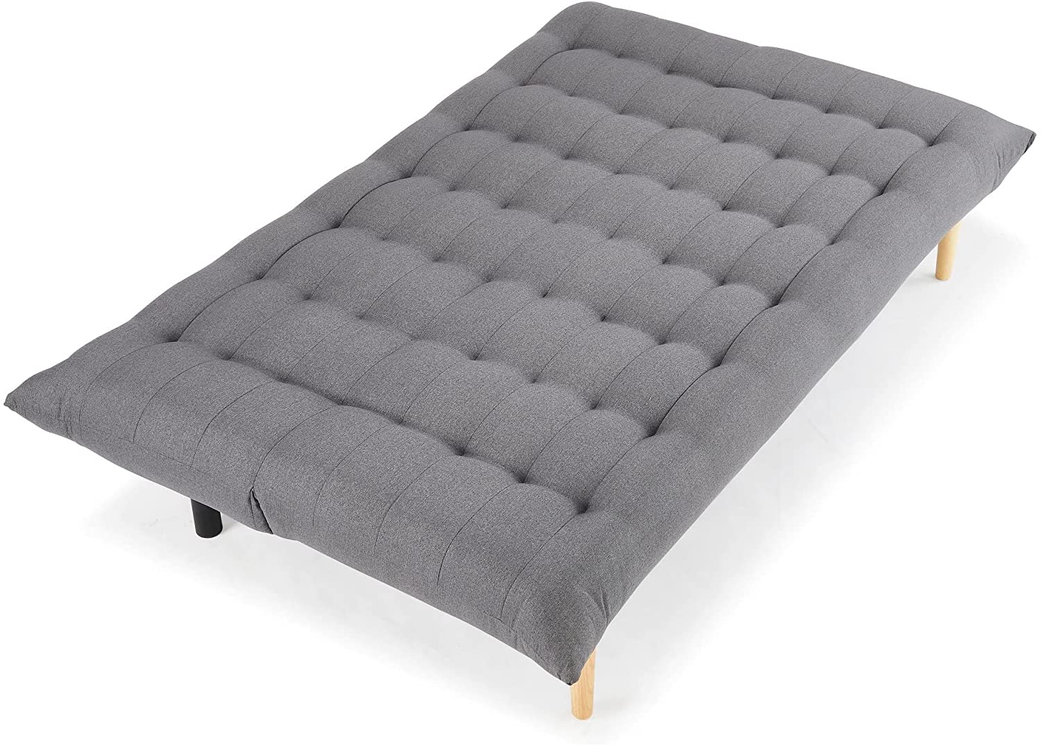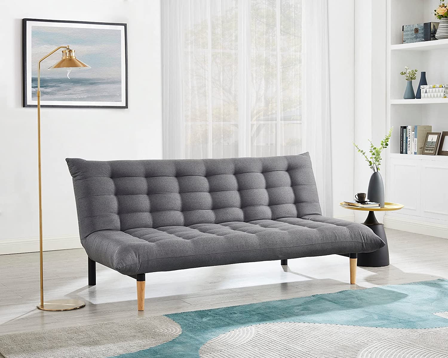 Home Detail 3 Seater Fabric Sofa Bed Dark Grey Pillow Topper Tufted Backrest Wooden Legs