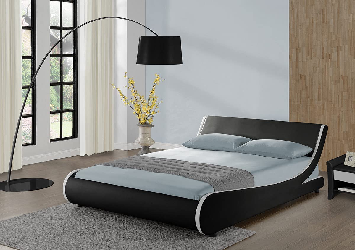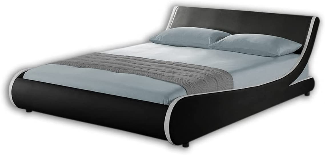 Home Detail Leather Bed Frame Double Bed or King Bed Upholstered with Faux Leather Fabric, Bed Frames Only in Double Size or King in Various Leather Bed Colours (Double, Black/White)