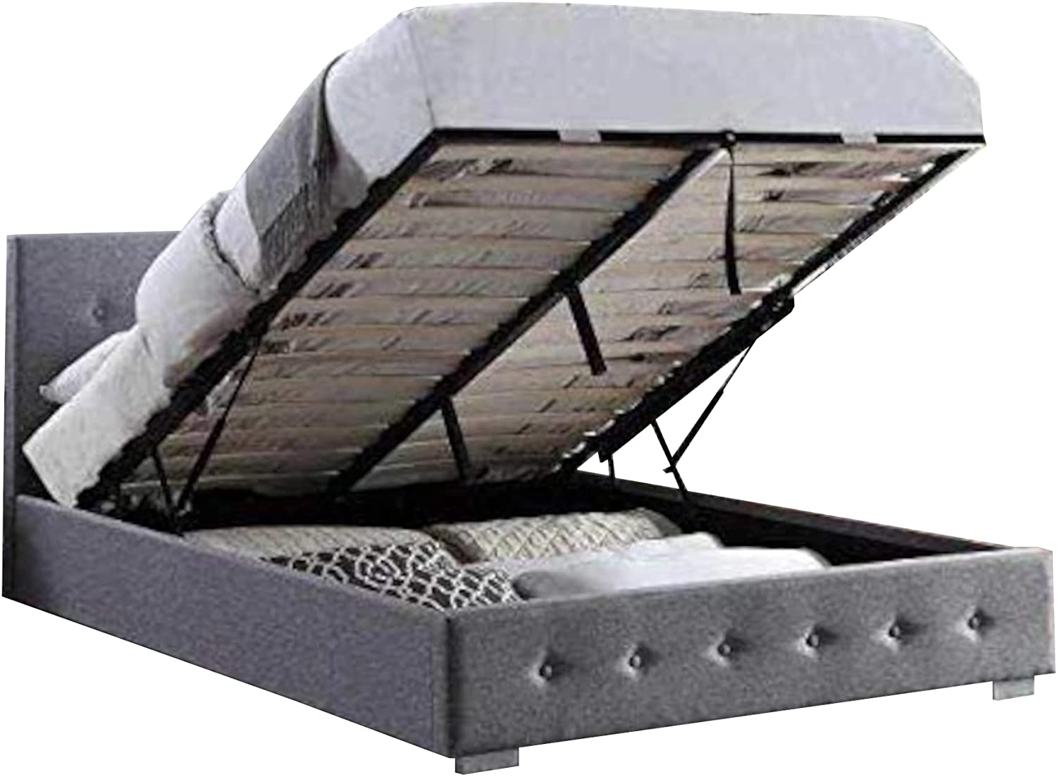 Home Treats Ottoman Storage Bed | Double Bed Frame With Storage & Gas Lift Bed 4ft6 | Upholstered in Durable Hopsack Grey Linen Fabric (Double – No Mattress, Hopsack Grey)