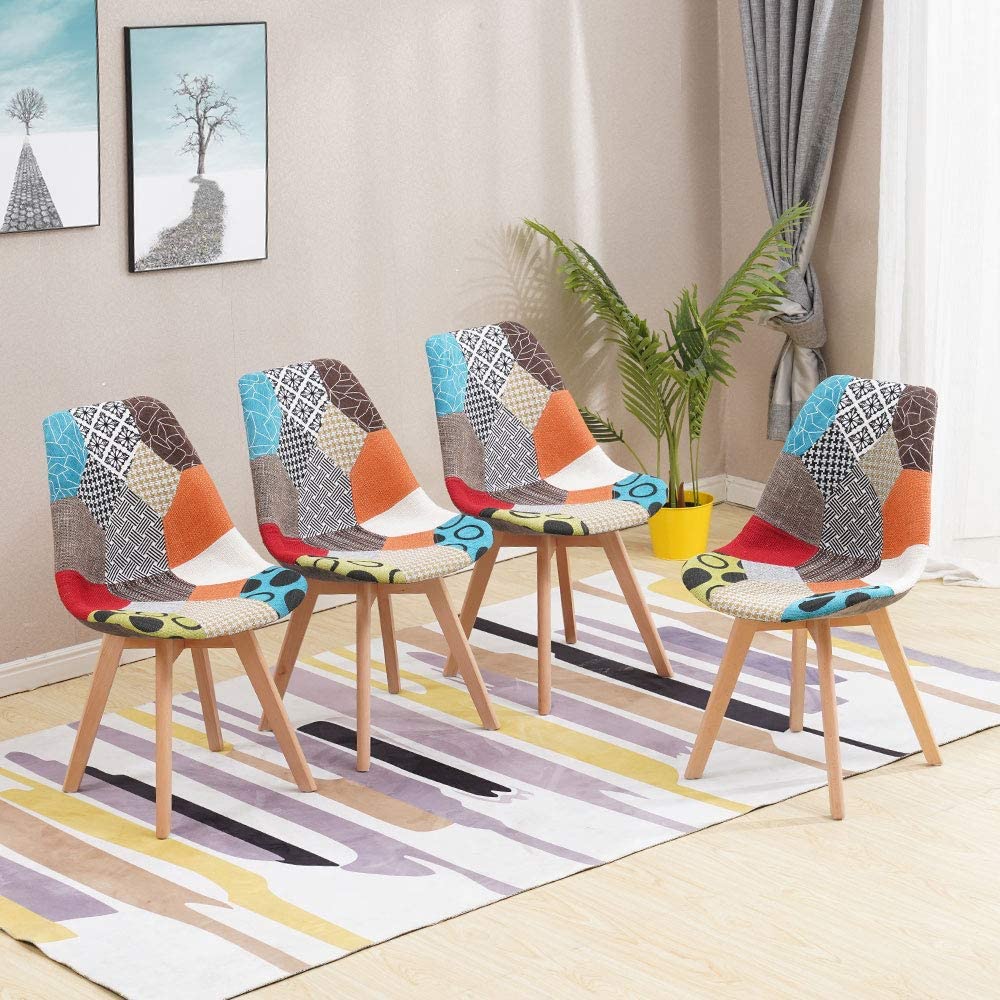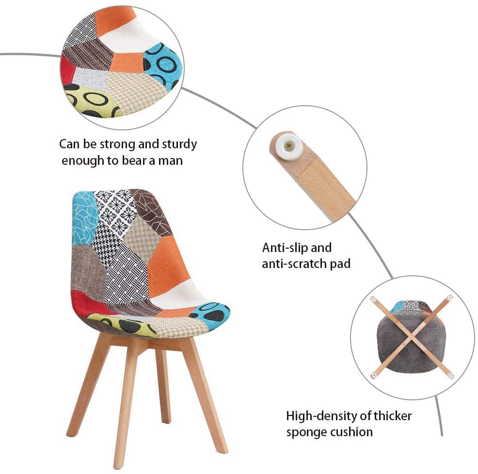 - ❤️ COMFORTABLE PADDED SEAT: Soft padded cushion seat covered with multicoloured patchwork fabric, ultra comfy for long time sitting, you can enjoy eating, working or studying on this chair, feeling more comfortable and relaxed