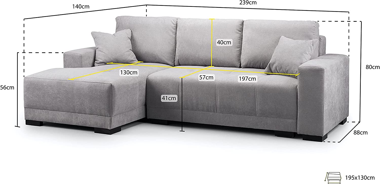 - 【DIMENSIONS】Length 239×140 cm – Depth 88 cm – Height 80 cm (more measurements are in the dimensions image)
