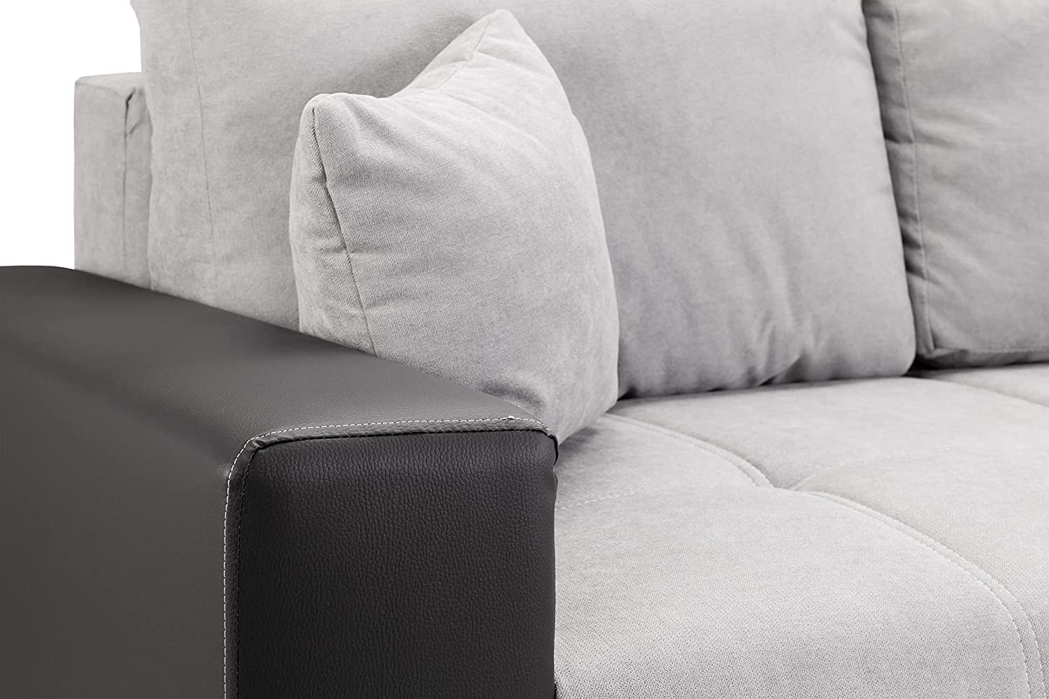 Honeypot – Sofa Cimiano – Corner Sofa Bed – Storage – Faux Leather & Fabric – Black Grey White (Black/Grey, Left Hand Corner)