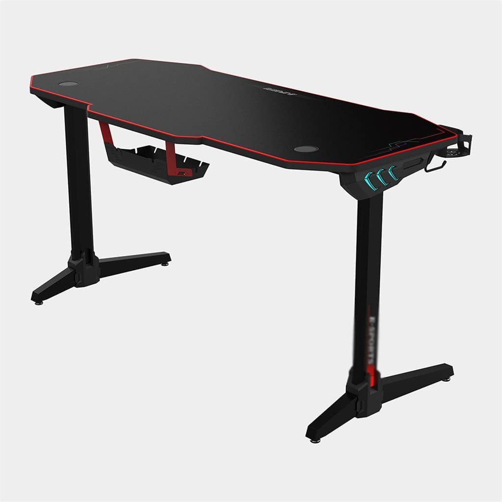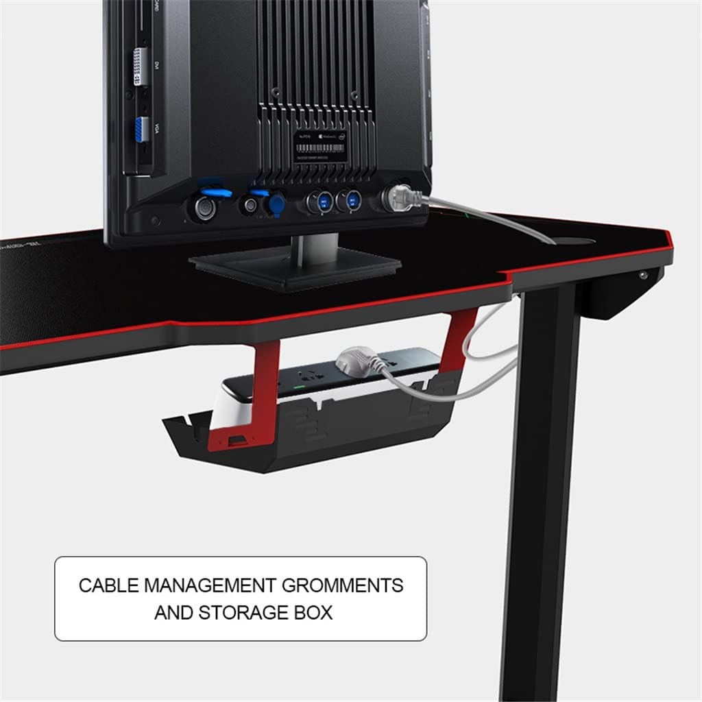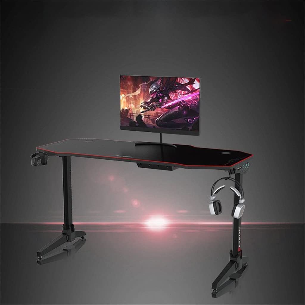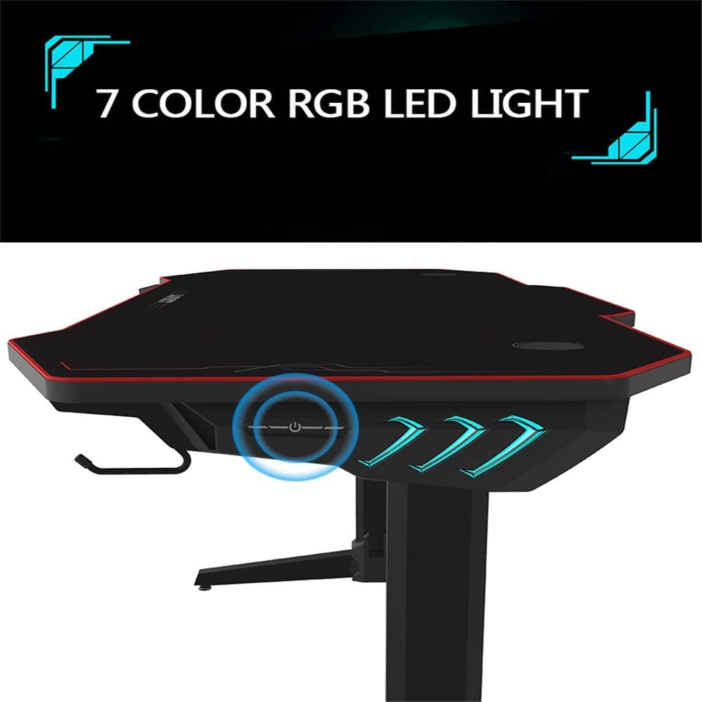 HOUKAI 55 Inch Computer Laptop Desk Ergonomic Gaming Desk E-Sports Computer Table PC Workstation with Mouse Pad Gamer Tables RGB Light, Onecolor