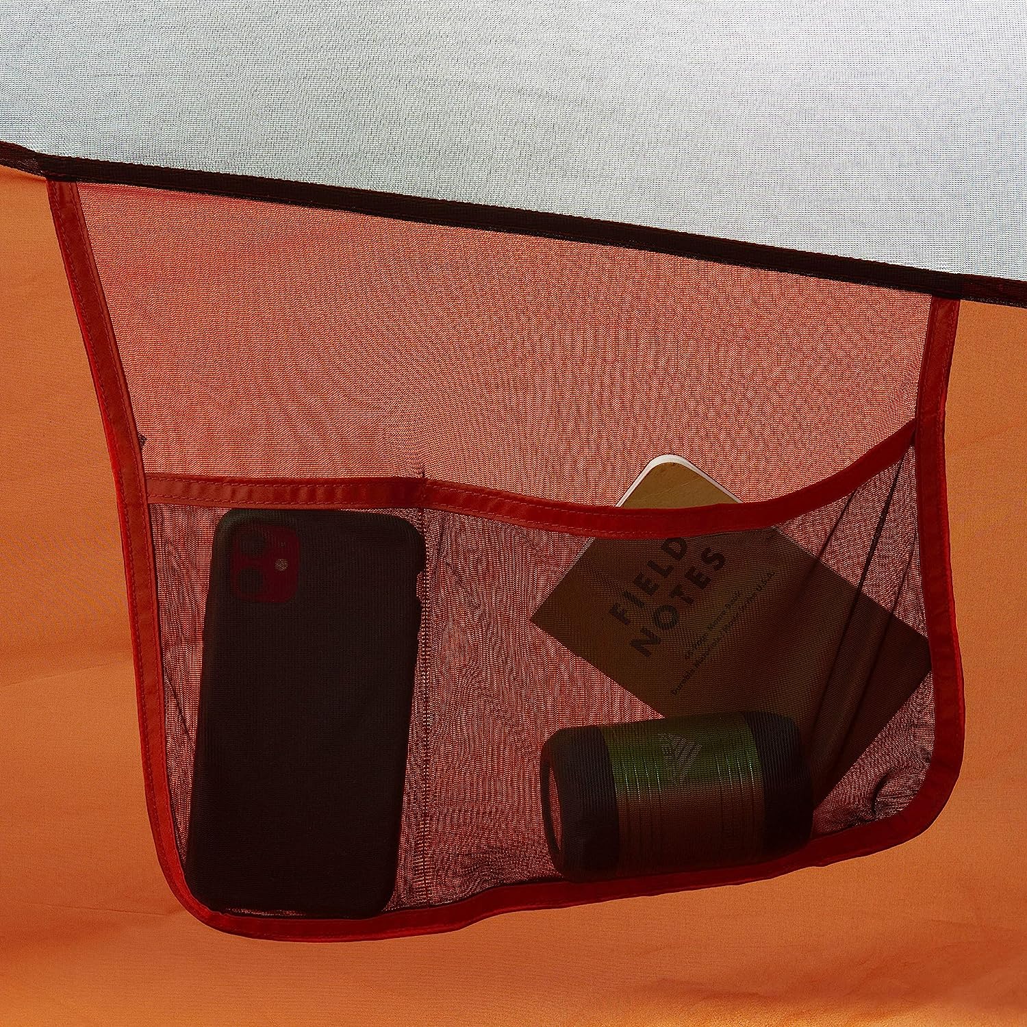 • DEPENDABLE MATERIALS: Set up is easy peasy, and you can rest easy knowing you’re protected from the elements. Tent floor and fly 68D Polyester, pre-attached guylines, 4 internal pockets, vented rainfly, color coded pole setup