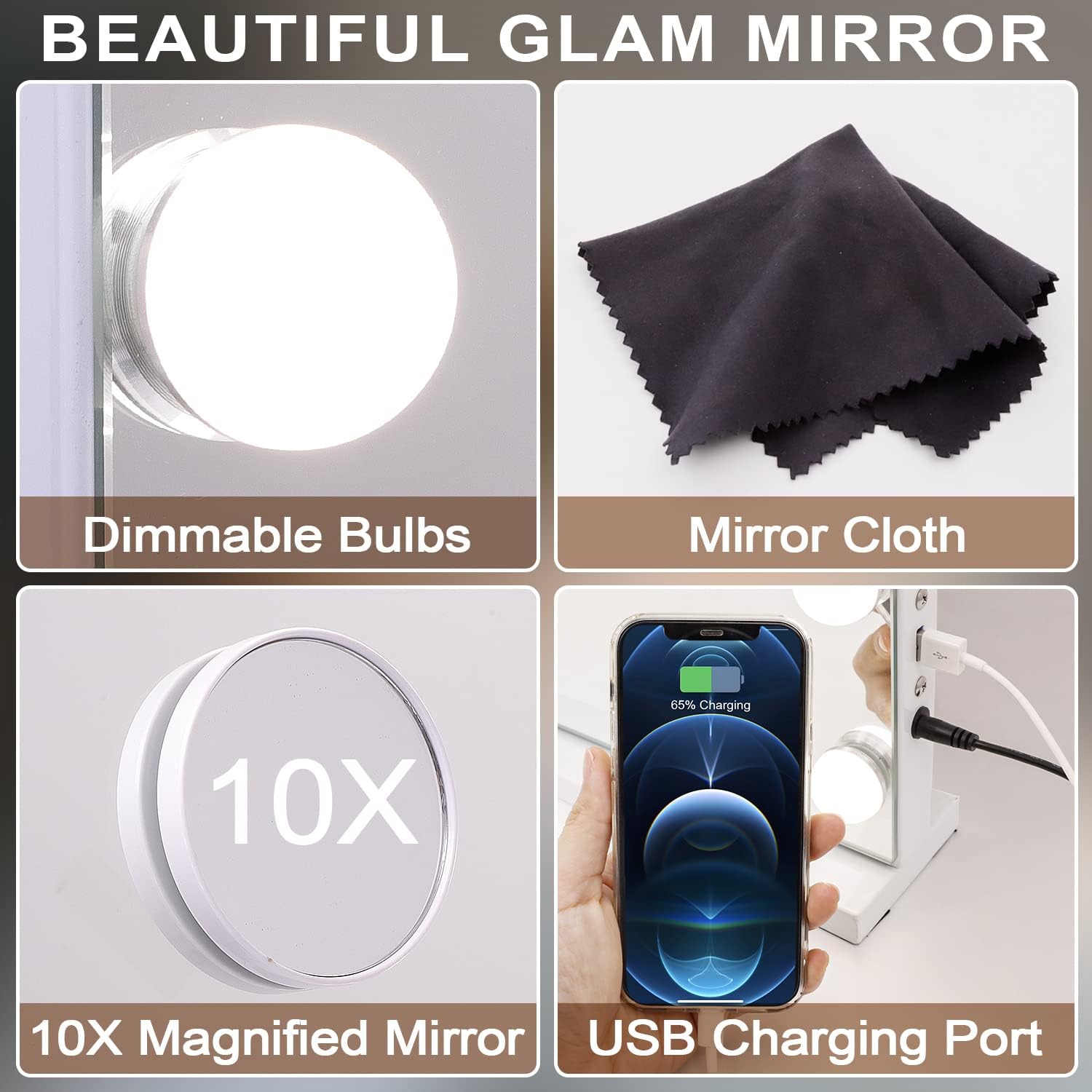 - ❤[Versatile Design] USB Charging port is designed on the side of the vanity mirror. It is convenient to charge your mobile phone or other USB devices while making up.