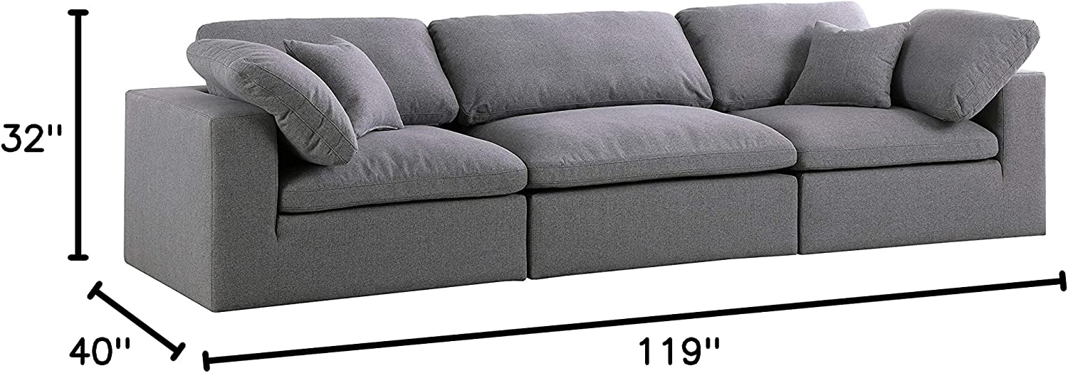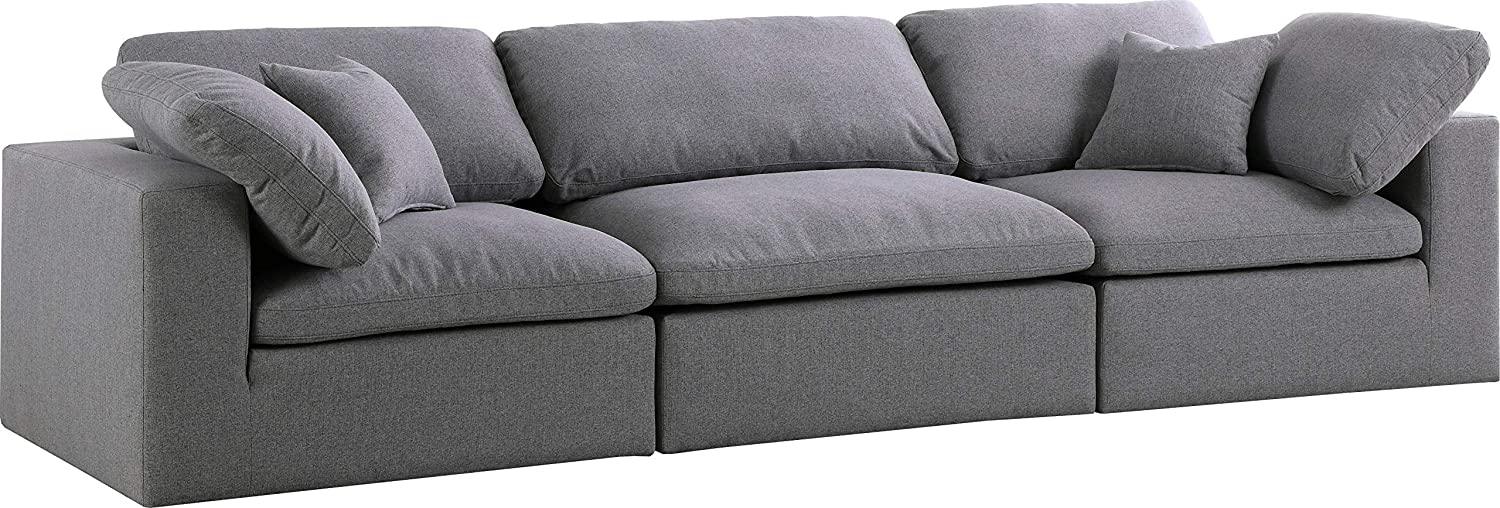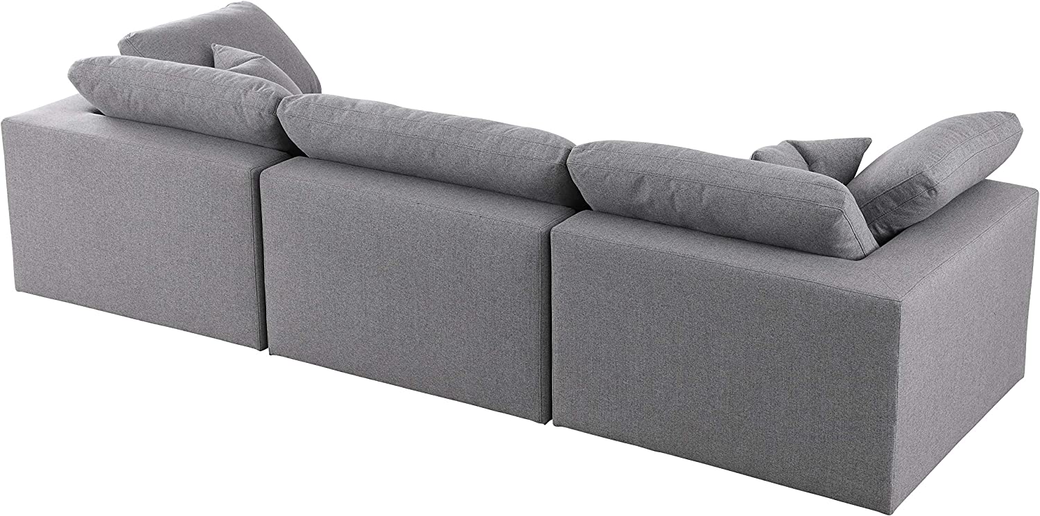 Meridian Furniture Serene Collection Modern | Contemporary Deluxe Cloud-Like Comfort Modular Sofa, Soft Linen Textured Fabric, Down Cushions, 2 Corner + 1 Armless, Grey