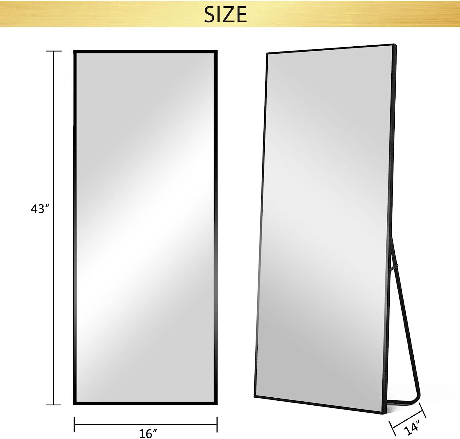 PexFix Full Body Mirror Full Length Mirror with Black Aluminum Alloy Frame Mirror Full Length with Stand Wall Mounted Mirror Hanging Mirror for Wall Bedroom Bathroom Living Room Decor, 43''×16''
