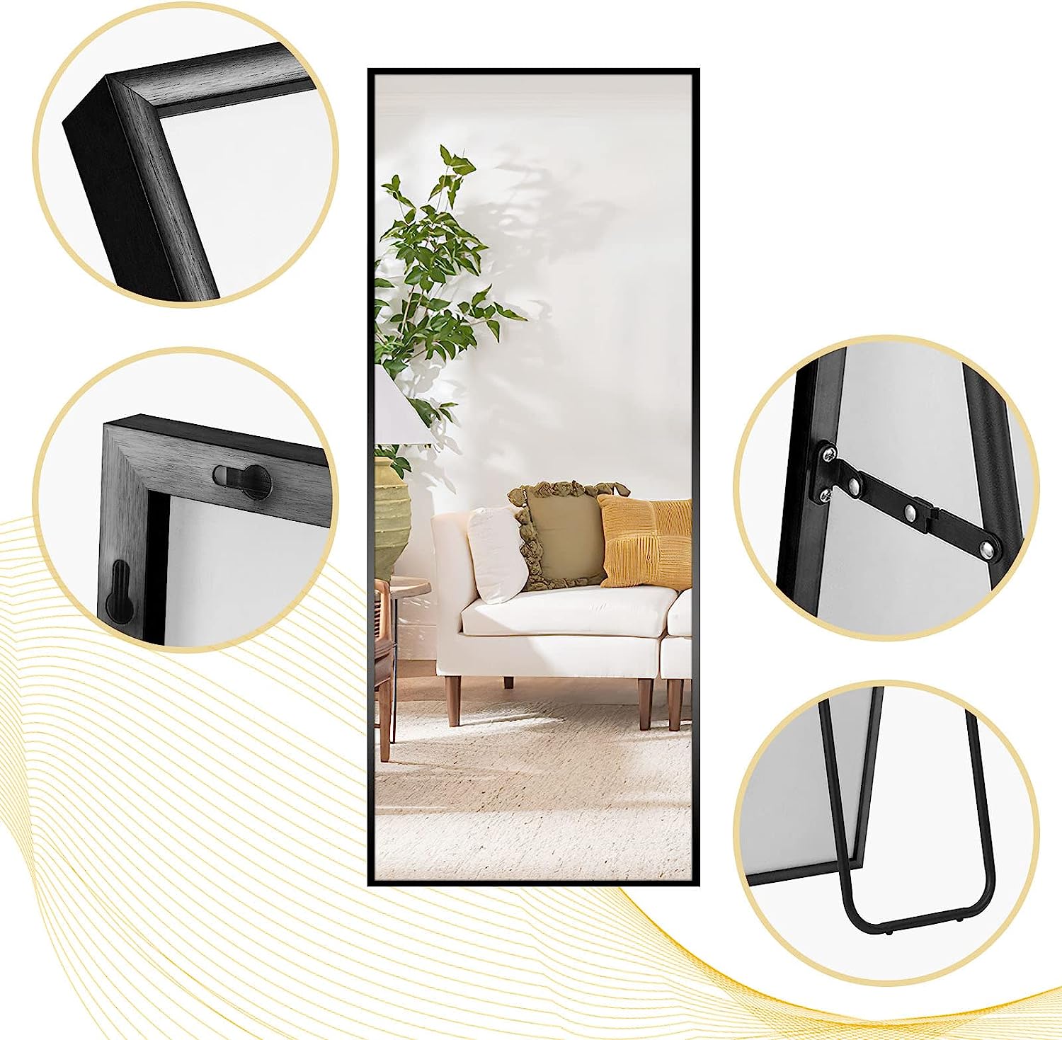 • ❀【WIDE APPLICATION】Suitable for bathrooms, the bedroom, living room, locker room, behind the door, corridor, clothing shop,The decorative full body mirror is very suitable for installation at home and also suitable for retail as a dressing room mirror.