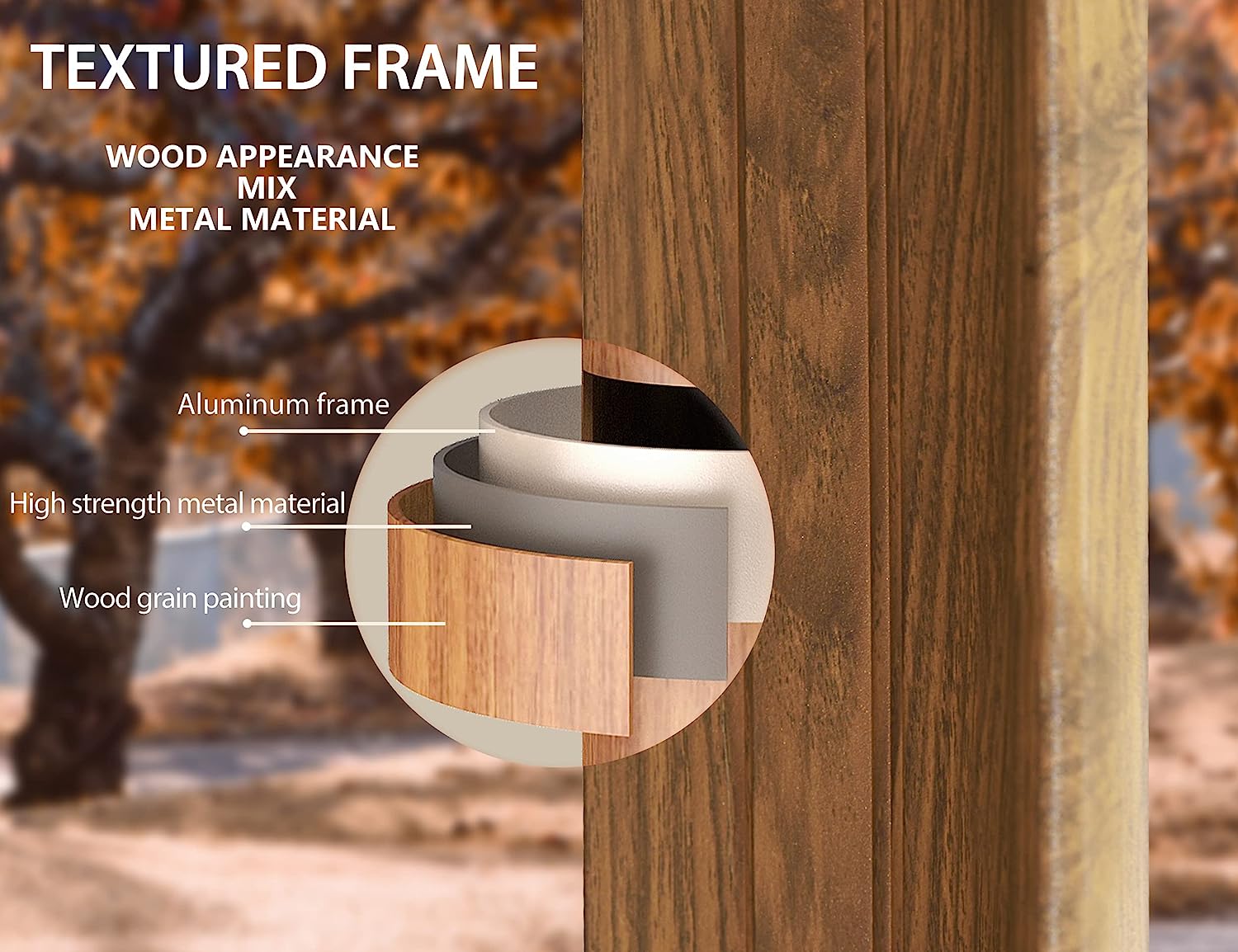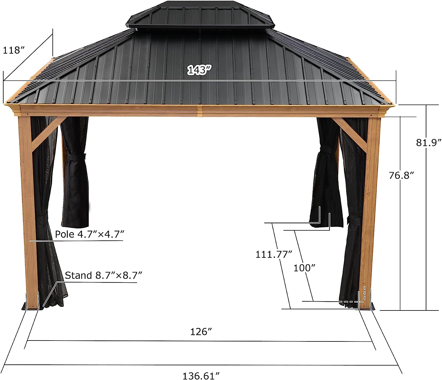 • Size: 10' X 12'. Outstanding teak-finish powder-coated aluminum frame, sturdy for 4 seasons use and always catch your eyes.