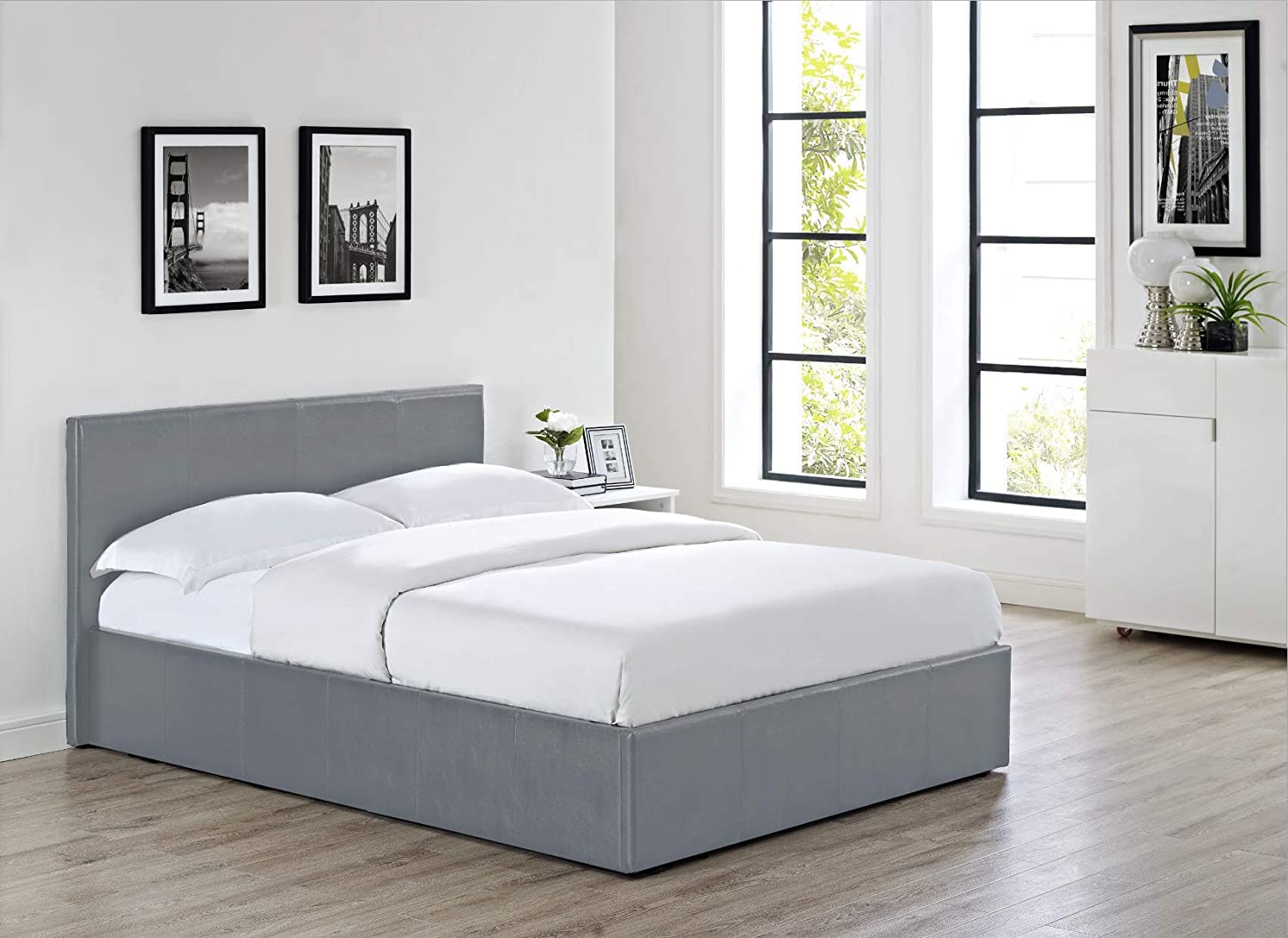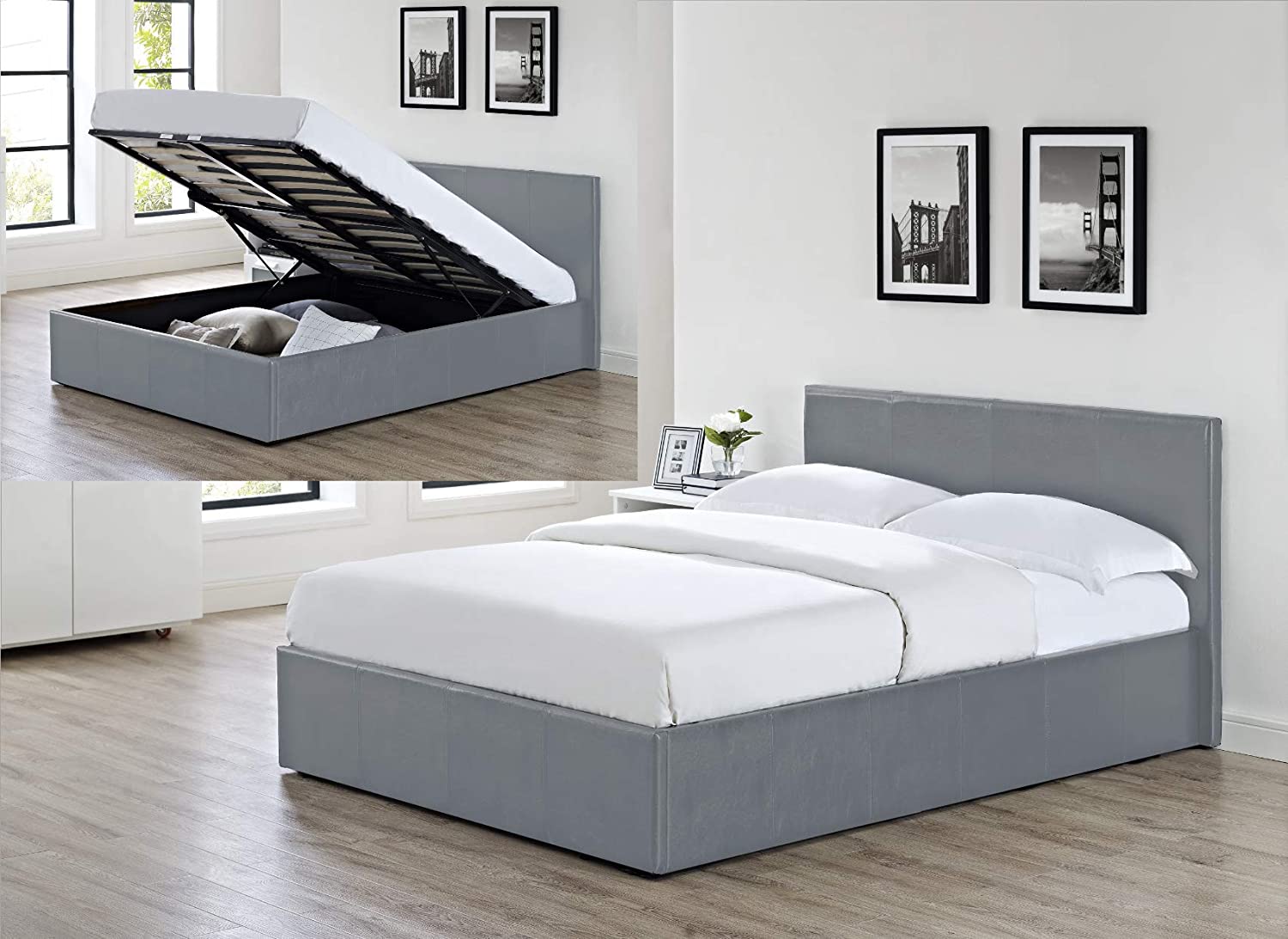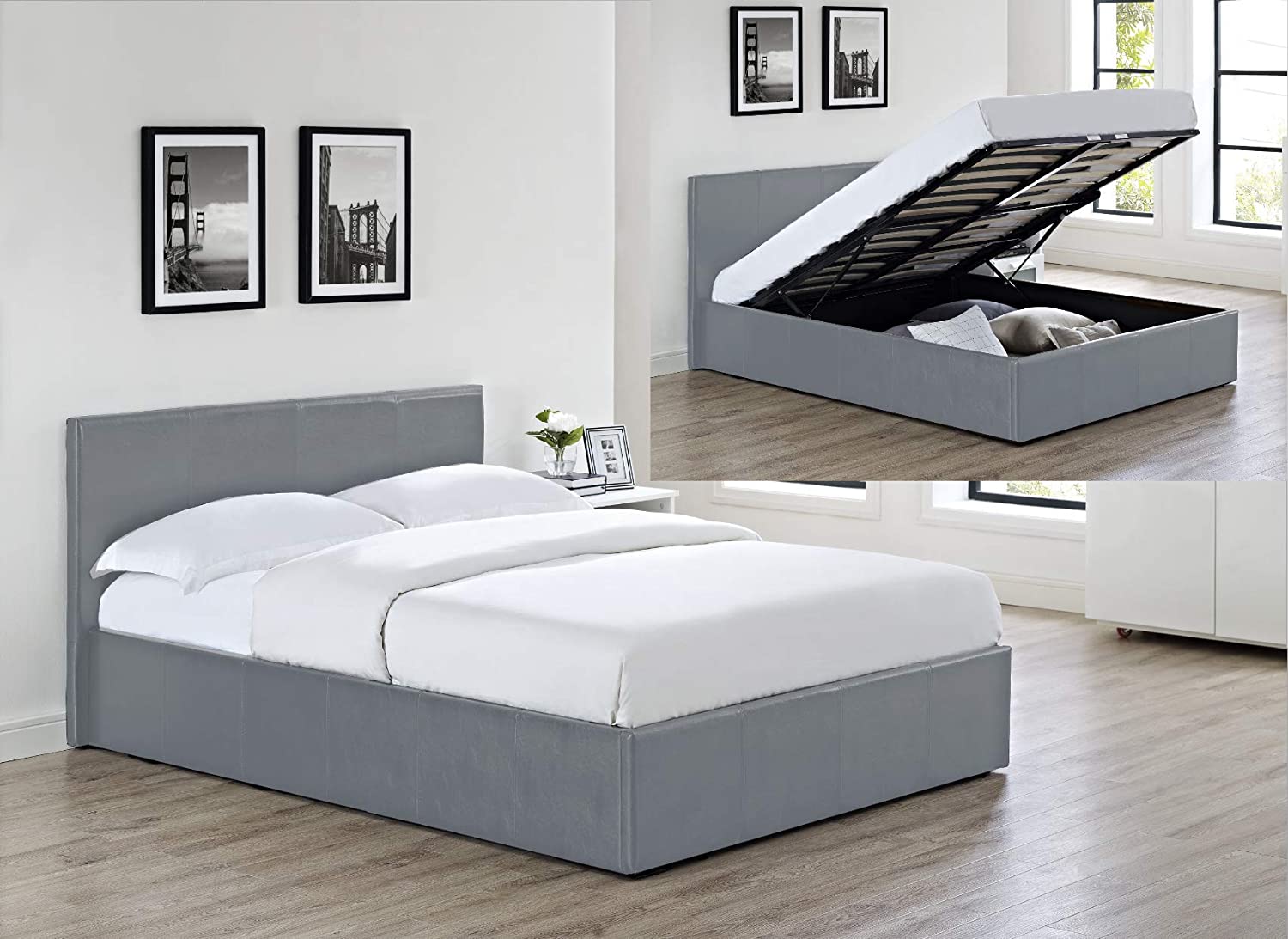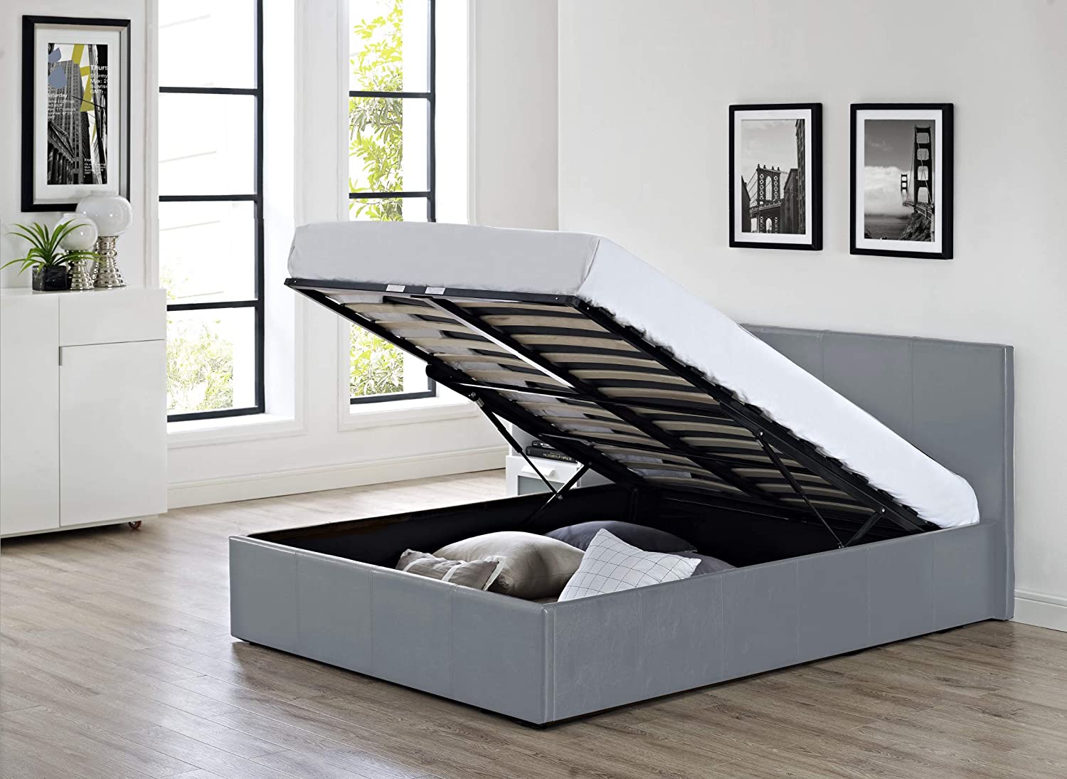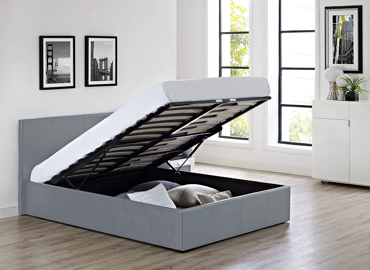 Siesta Luna – 4FT6 Double Faux Leather Ottoman Storage Bed in Grey Faux Leather