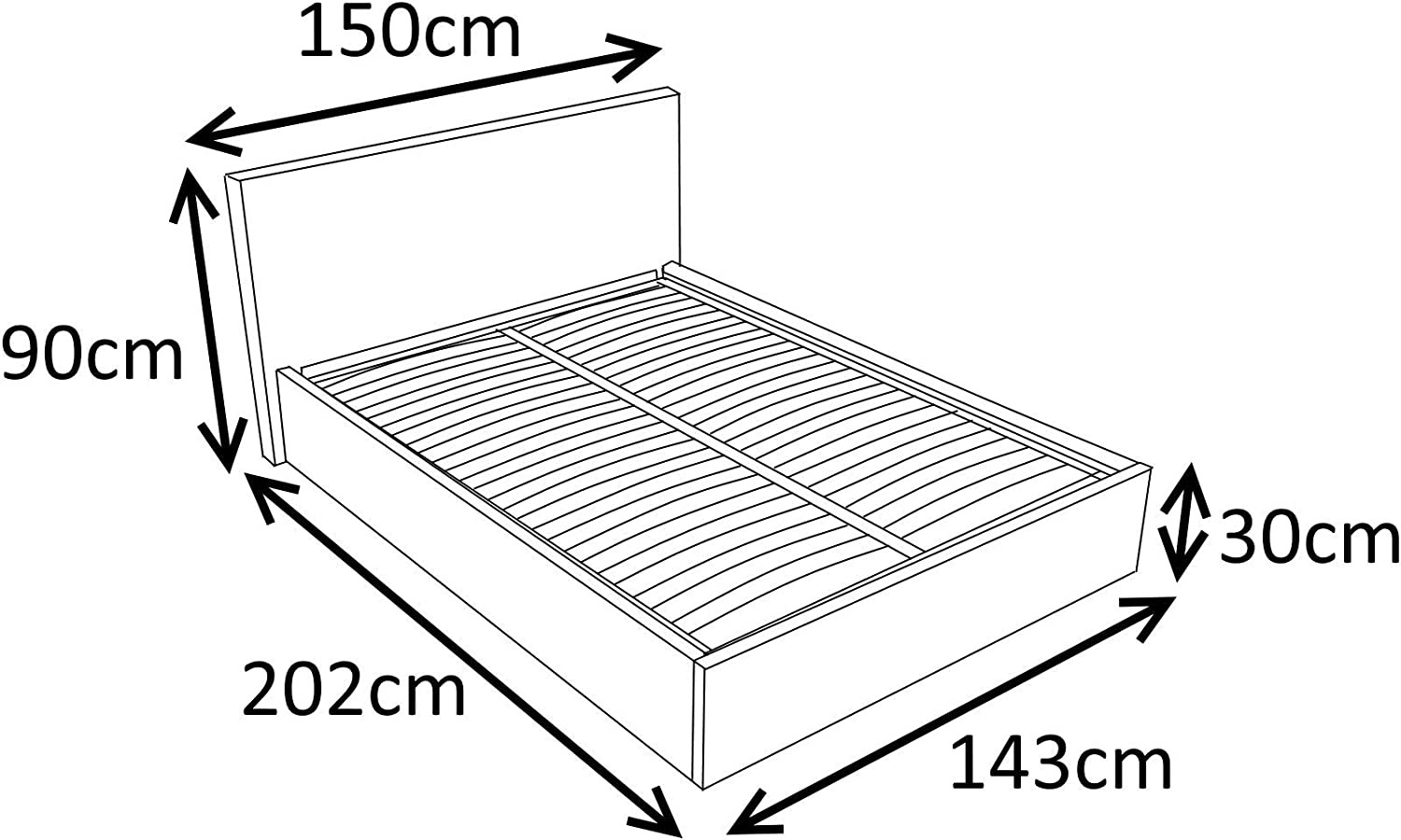Siesta 4ft6 double faux leather ottoman storage bed in grey faux leather you can’t beat a great night’s sleep to start your day off on the right track. The siesta ottoman bed frame turns wasted space into storage space. Under the slatted base, which can be lifted, hides a practical storage solution. The gas pistons make lifting the bed a breeze. So you don’t have to be super strong to get super storage. This bed boasts a robust metal frame and is finished in a high quality, durable faux leather with stitch detailing on the headboard and footboard. Durable faux leather under bed storage solution gas-lift mechanism for easy lifting frame stays open, freehand. Robust metal frame cloth base keeps items free from dust easy self-assembly approximate dimensions: storage space (all sizes): 26cm deep width: 152cm x length: 203cm headboard height: 88cm foot board height: 34cm takes standard uk mattress size: 4ft6 double: w135cm x l190cm